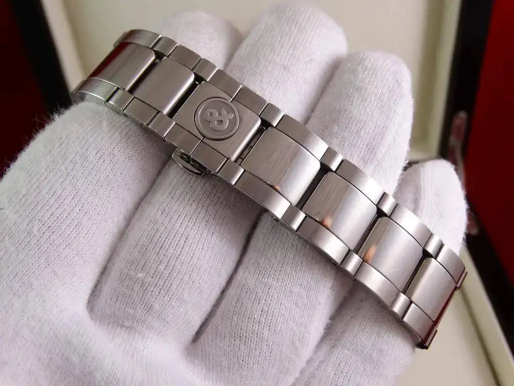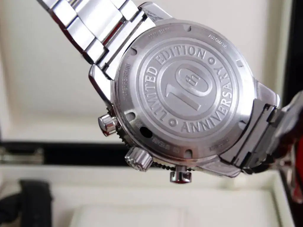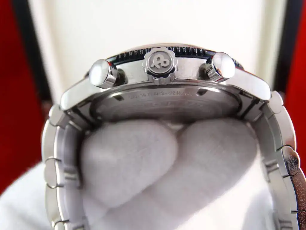 El reloj fue adquirido en 2008.Se encuentra en muy buen estado, con ligero desgaste en el anonizado del bisel, apenas visible. Monta el brazalete de acero y se ha sustituido la correa por una nueva original del modelo, directamente a través de B&R Spain y de las últimas unidades disponibles en Europa. Incluye todo el set, formado por tarjeta de garantía, manual Edición Limitada, caja lacada y sobre-caja de cartón. En su interior un calibre que late con una amplitud de 260º.
