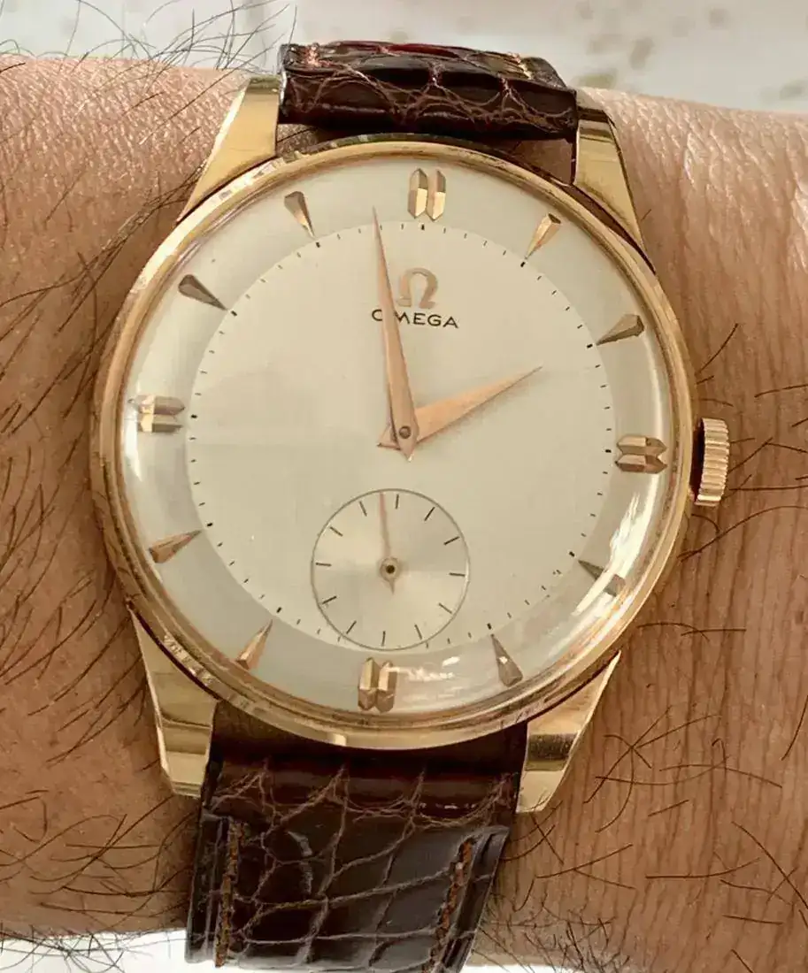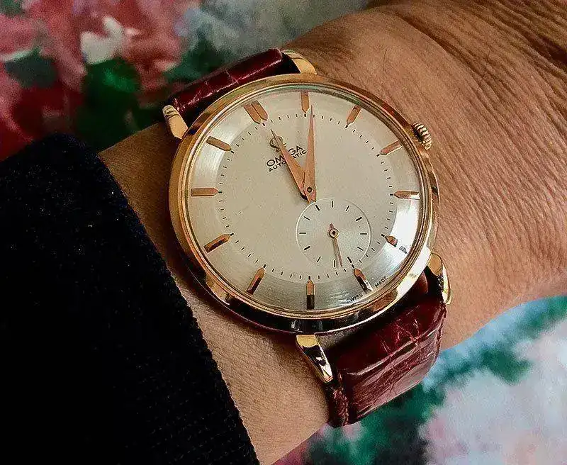 Oro rojo y bien macizo de los años 50 y como nuevo este vintage Omega bumper