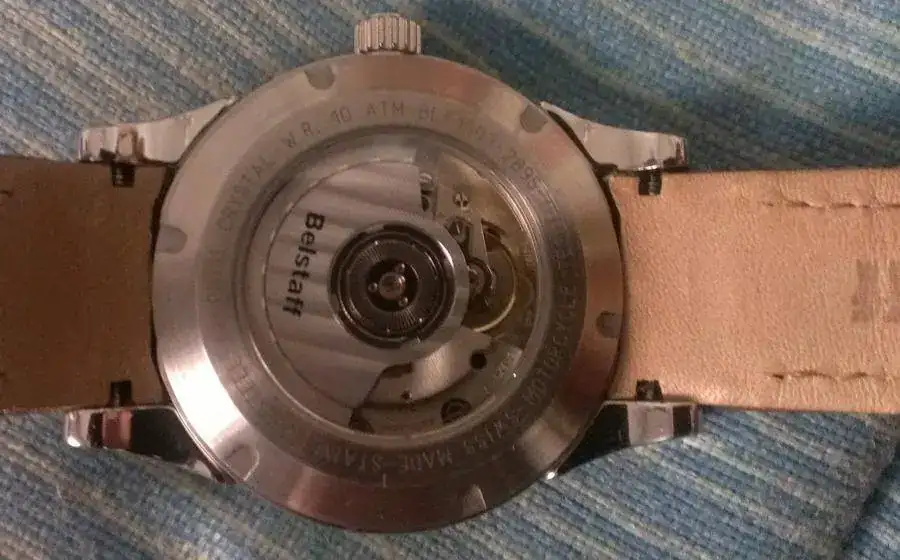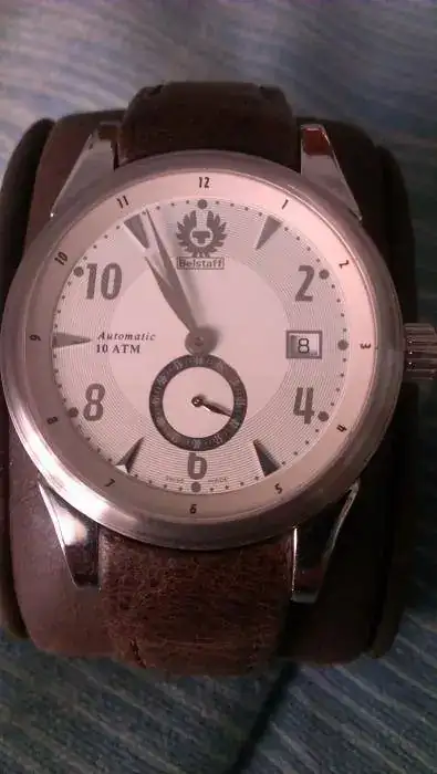 Bueno, pues ahora le toca el turno a este Belstaff, mucho se ha hablado de estos relojes por aqui, pero creo que ninguno de los poseedores ha puesto en duda su calidad, digna para mi de cualquier otra marca de clase media, de hecho estan fabricados por la prestigiosa casa Lorenz. Los datos del reloj: