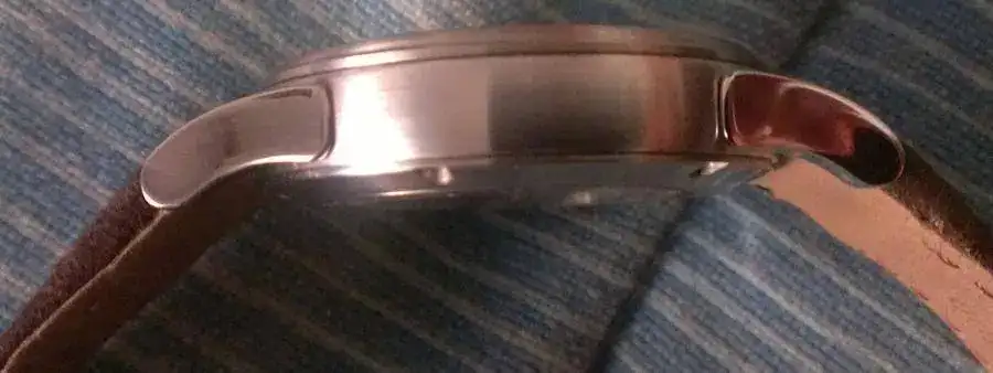 Tiene 40mm de diametro que al carecer casi de bisel lo hacen parecer algo mayor y mas en un reloj de vestir como este, cristal de zafiro, corona roscada, Wr 100 metros, trasera roscada con fondo visto y monta un calibre Eta 2895.