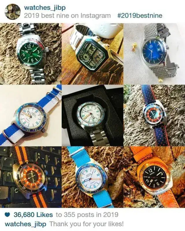 Me parece llamativo que de las nueve mías de 2019, siete sean de relojes rusos y tres de ellas de nuestro proyecto del subforo ruso, el Baikal, un reloj que siempre llama la atención y por el que me preguntan con frecuencia cada vez que subo una foto. Las dos restantes han sido de un Casio AE1200 y de un Orient Bambino V4.