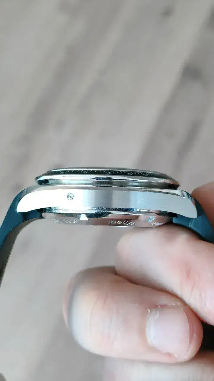 Caja de 40mm, L2L de 45mm y altura de 15mm. Se ve y se siente como un 39mm. No cabecea para nada y es muy muy bonito. Lo compré con brazalete pero no lo he ajustado todavía, así que le he calzado una correa de caucho aftermarket, que le sienta de maravilla (emho). Tiene el logo impreso y se adivina el cromalight, que no es muy potente, pero tampoco le hace falta.