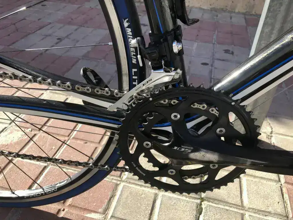 - Desviador y Bielas : Shimano 105 Compac (desarrollo 50-34) , el Campagnolo que traía tenia un desarrollo de 52-39 y lo cambie por este lo cual hace el pedaleo mucho mas comodo y asequible a todos los desniveles