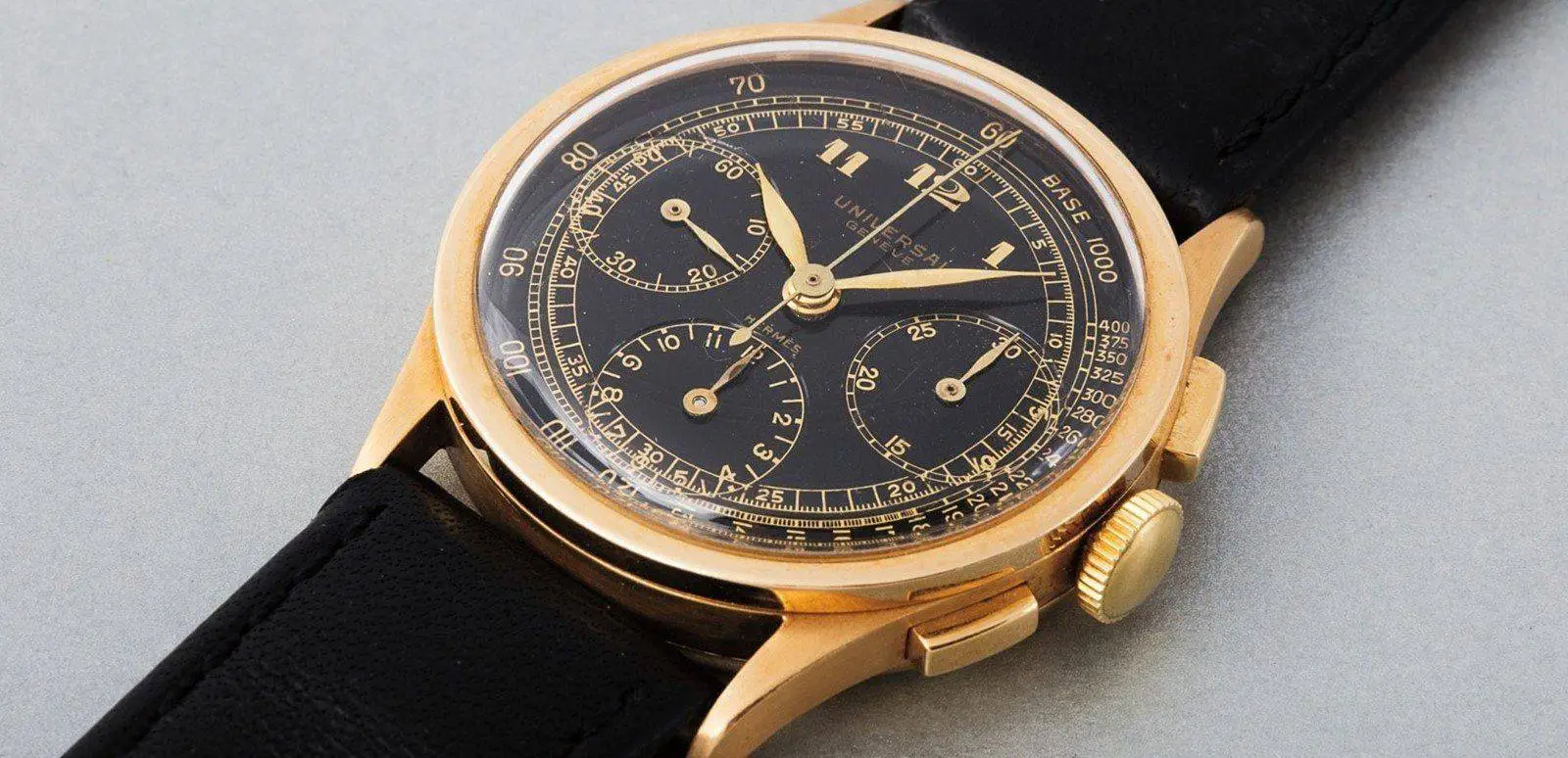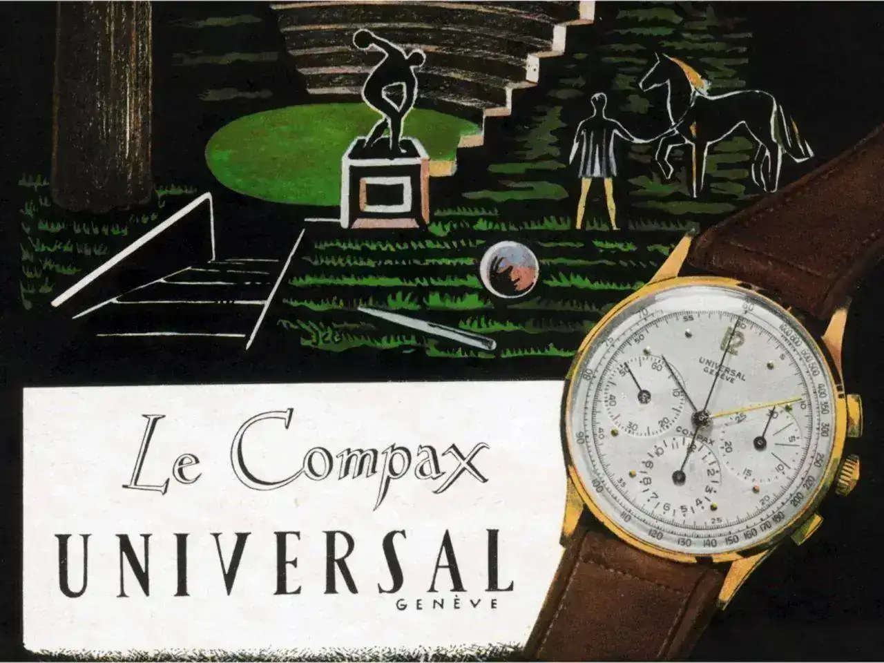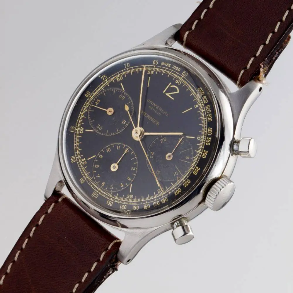 Universal, como tantos otros, vendió sus relojes a otras marcas, algo que quedaría de manifiesto en este anuncio... y de paso dejaría clara la implicación de Hermés en la relojería de calidad desde mucho antes de lo que algunos suponen o sus prejuicios les hacen pensar.