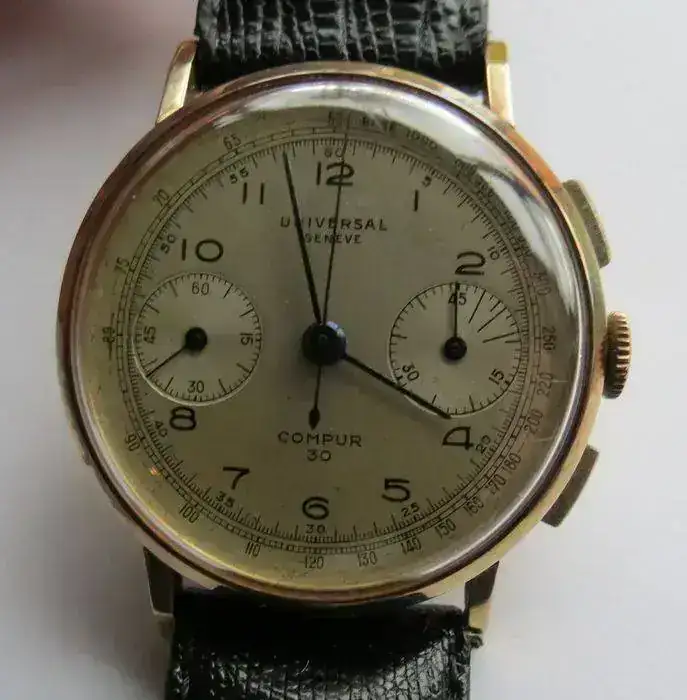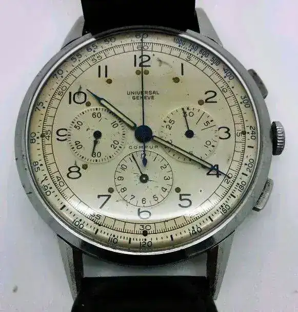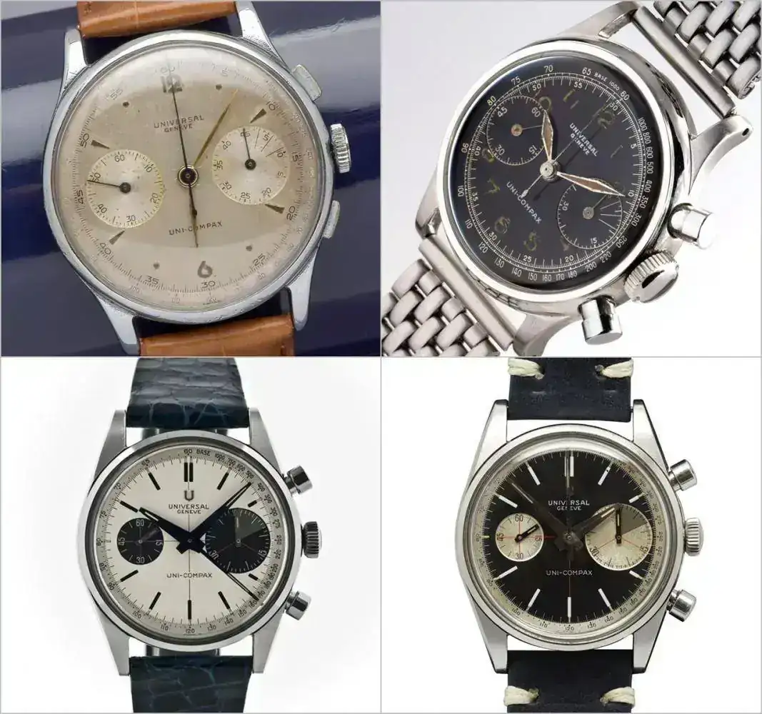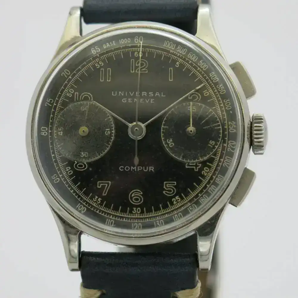 Uni-Compax aparece en las esferas de cronos con DOS subesferas (una de ellas, como dije, los segundos contínuos), aunque a estos modelos también se les denomina inicialmente Compur o Compur 30 (término registrado por Universal Geneve en 1934). Lo único cierto es que no existe ningún reloj de la época (ni posterior) que luzca "Bi-Compax" en su esfera. Eso no es más que un invento reciente que gracias a internet ha calado entre los aficionados (igual que lo hizo en su día la expresión "Paul Newman" para referirse a una esfera concreta del Rolex Daytona, acuñada por un coleccionista italiano). Tiene su lógica, pero simplemente es incorrecta. Compur (también Compur 30) sería lo más parecido a lo que la mayoría entiende por bi-compax, pero que la marca decidió llamar Uni-Compax
