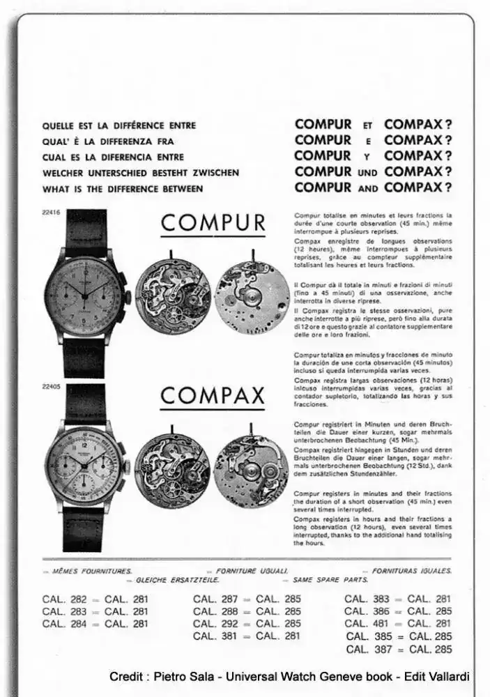 Buscando información he encontrado una página () que explica -entre otras muchas cosas- la diferencia entre "Compur" (más tarde Uni-Compax) y Compax:![]()