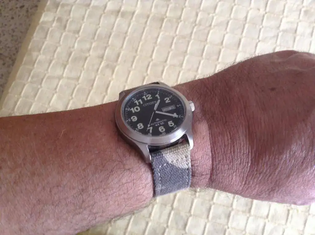 Y luego tengo este Citizen "aventurizado" con correa de camuflaje de lona: