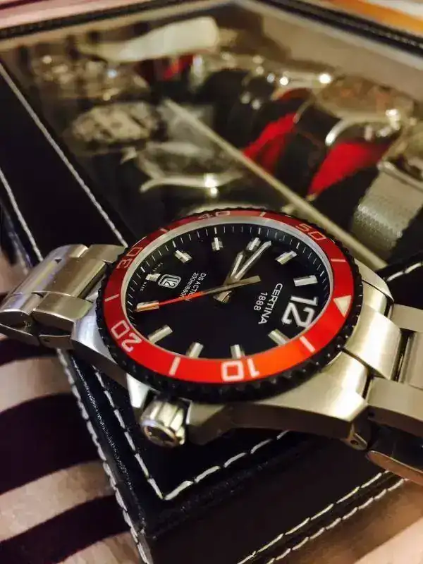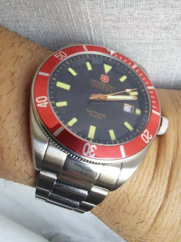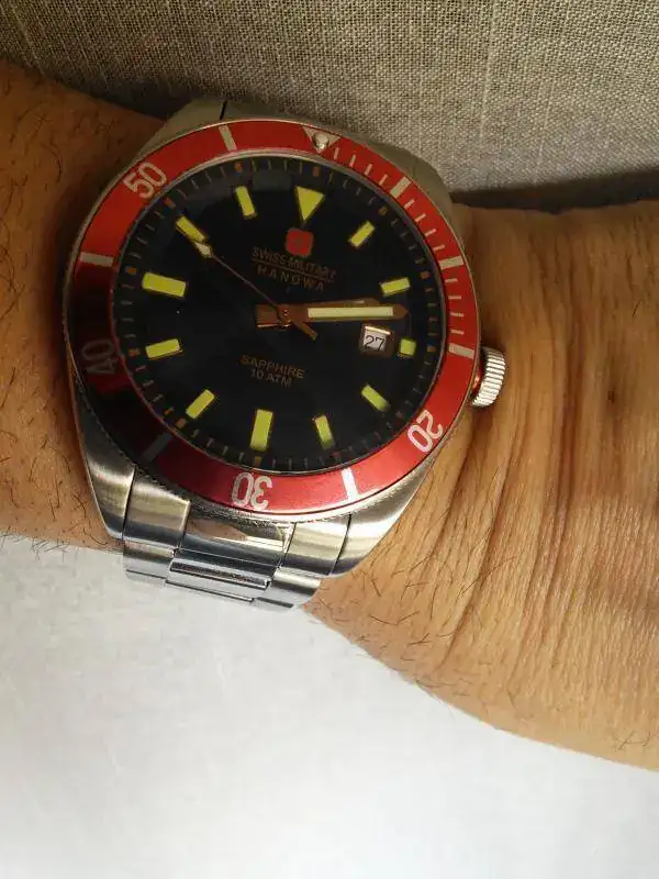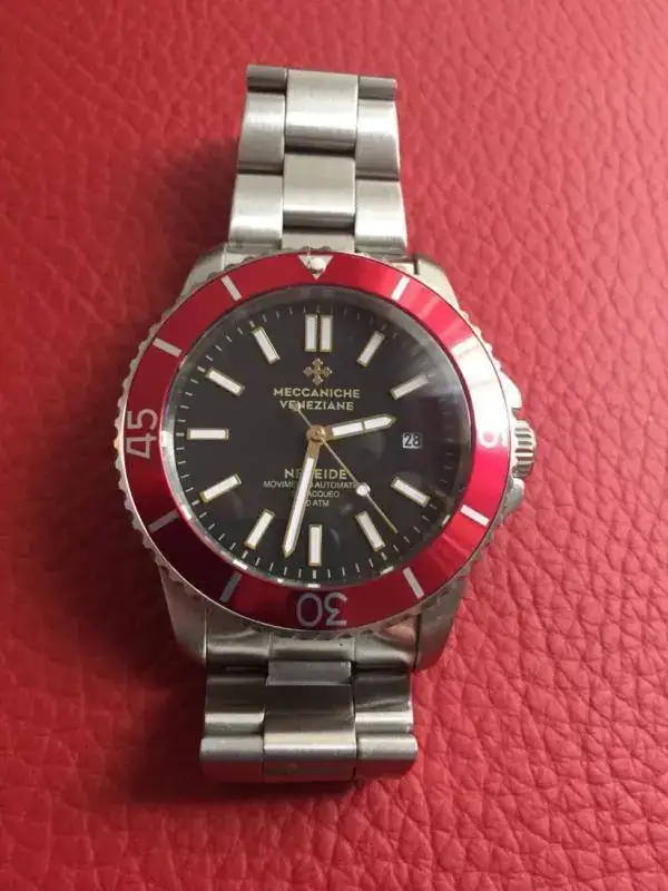 Rojo pasión, reloj comodisimo en muñeca y con buen acabado general...se echa de menos que venga con armis (solventable) y la bata de plástico de los nereide primera generación supone un descuido para un reloj de ese presupuesto...
