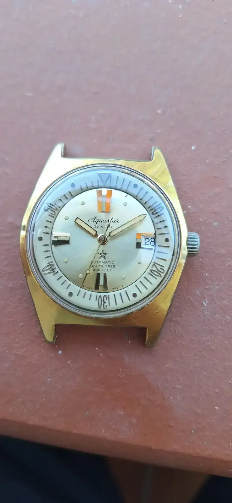 Por último , el último en llegar, este duward también de los 60 , con bisel interno activado todo también desde su única corona , está situada a las 3 , el tono calabaza que han adquirido las agujas da para un hilo , una preciosidad .