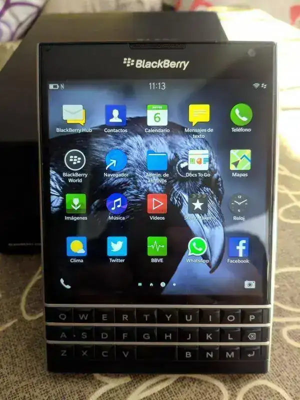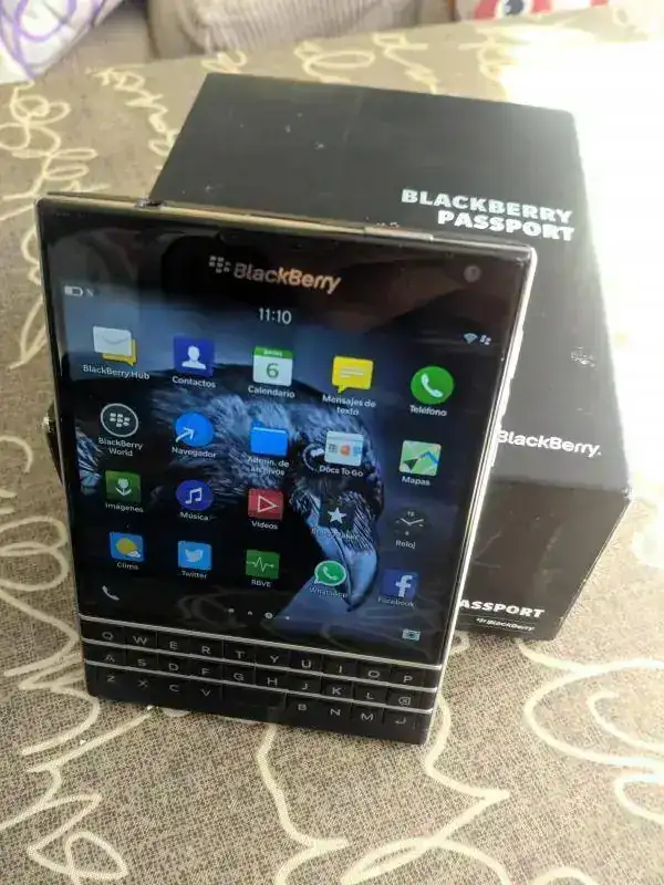 Magnifica Blackberry Passport practicamente nueva. Se ha usado siempre con funda y esta sin un rasguño ni nada. El cargador no es el europeo, pero se puede poner un adaptador o usar cualquier otro adaptador. Lleva un procesador snapdragon que acepta carga rapida. Como puede verse en las fotos impoluto y la bateria esta como el primer día, sin uso, con 4g activado continuamente dura mas de dos días. De regalo funda de silicona y targeta Sd. Es el movil americano por excelencia, por su gran calidad, por su diseño innovador, por su pantalla de 800 nits cuadrada de 1400x1400, por sus dos altavoces estereo y por la seguridad que conlleva un sistema operativo como es blackberry os (compatible con aplicaciones android).Puedes ponerle lo que quieras,Whassap,Facebook y otras.