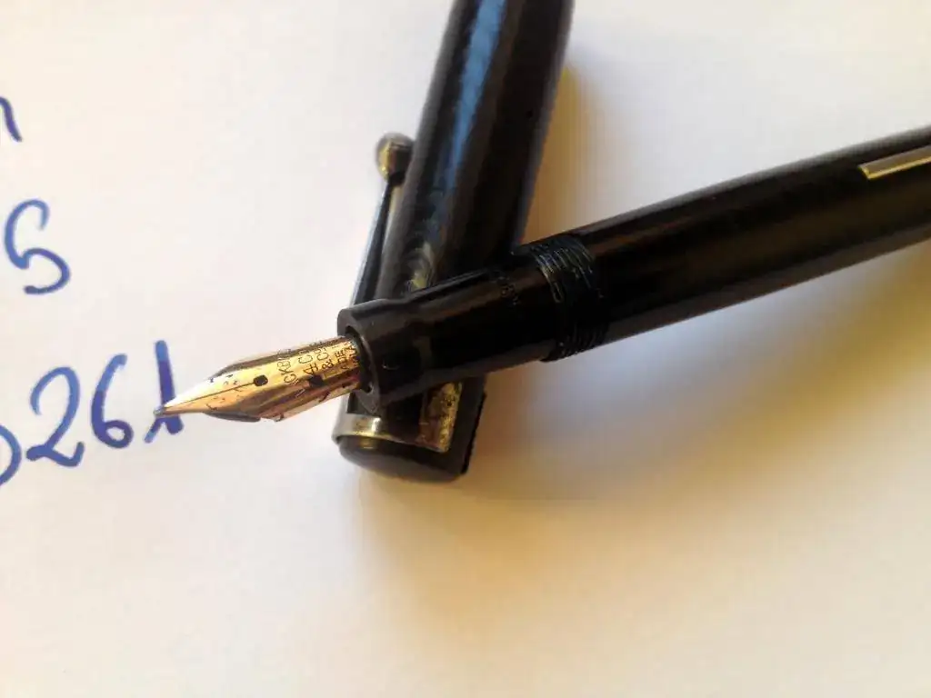 Tengo esta Blackbird 5261, en ebonita negra, de los años 30 y con plumín de oro de 14Kt muy flexible. La pluma la compré en un mercadillo y la arreglé yo, por lo que el saco está nuevo, lleva puesto 2 años. La estilográfica funciona perfectamente y a nivel estético está muy bien, para tener unos 80 años. El único defecto es que tiene roto el clip, yo ya la compré asi, y está sustituido por uno de quita y pon, que cubre perfectamente el hueco dejado por el original. En cuanto al guilloche, está decentemente conservado.