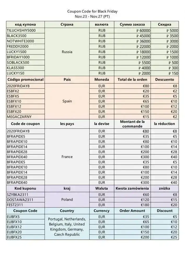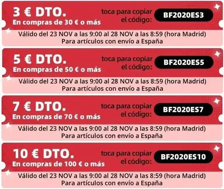 Os dejo por aquí unos cupones que se podrán usar en esta semana que entra, dónde en Aliexpress también hacen un evento especial con motivo del Black Friday.