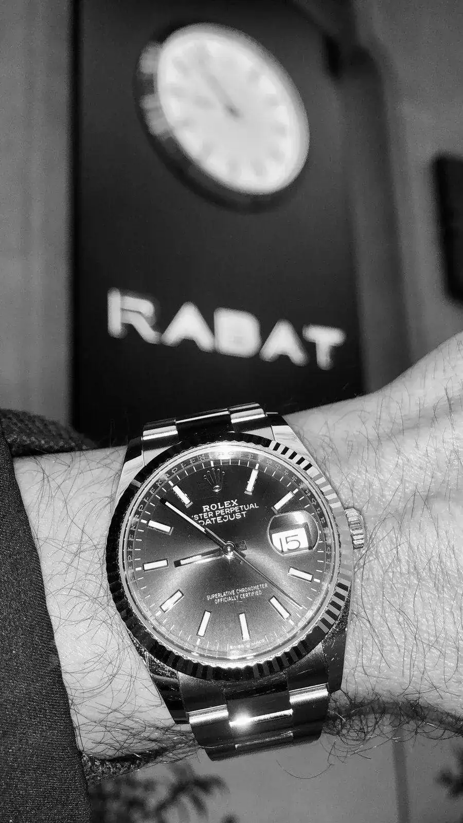 Jajaja era de esta mañana antes de entrar a la oficina. Trabajo a 20 metros de Rabat, y eso no se si es bueno o es malo 👿.Roger nos está liando… a esas horas Rabat debería estar cerrado, tanto de mañana como de tarde. Tanto del reloj de muñeca como del de pared. Igual se ha colado cual caco y se ha llevado los escasos Rolex que pudieran tener guardados en cajones. Ya nos desvelará el misterio. Y sobre todo con qué salió por la puerta, que de vacío no se fue seguro.