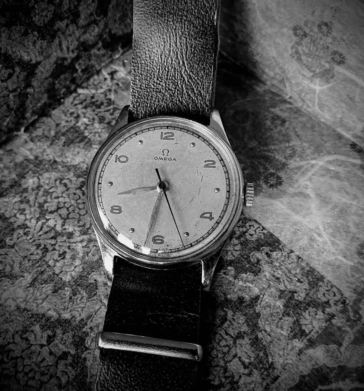 Exquisito Omega cal. 30T2, los icónicos calibres de 30 mm. Tengo uno de la primera serie (no dorado), pero su esfera fue retocada muy burdamente. Era algo muy normal que la esfera de esta serie se deteriorase. Enhorabuena por tu pieza.