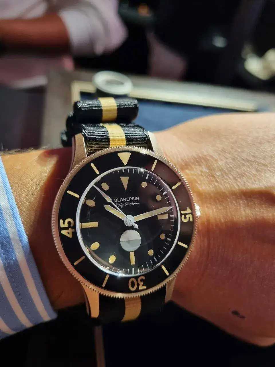 Vale va, Blancpain, habéis ganado. Caja de bronce-oro, solo hora, con una nato…, y todo por 32.500 euros??? En fin, a alguien en Blancpain se le va a salir el bazo por la boca del ataque de risa.