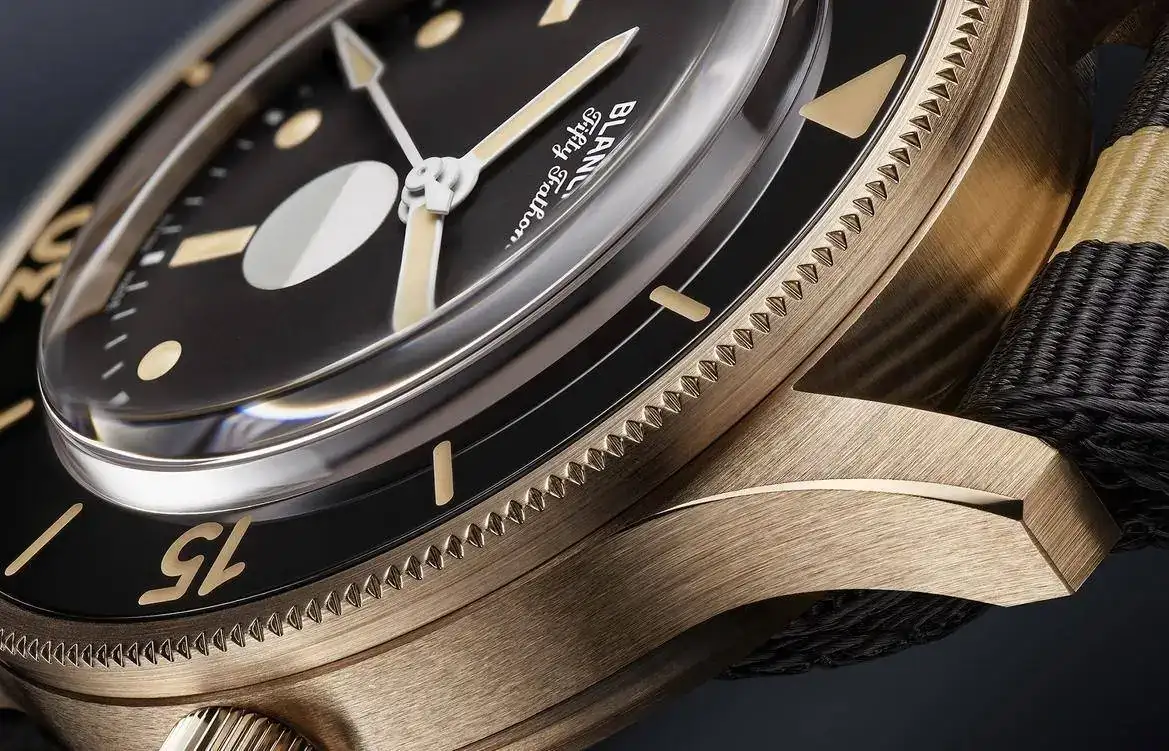 "This patented modern alloy has been previously seen at Omega, Blancpain’s sister company. It incorporates 37.5% gold (hallmarked 9K), 50% copper – allowing it to be called “bronze” – plus silver, palladium and gallium."