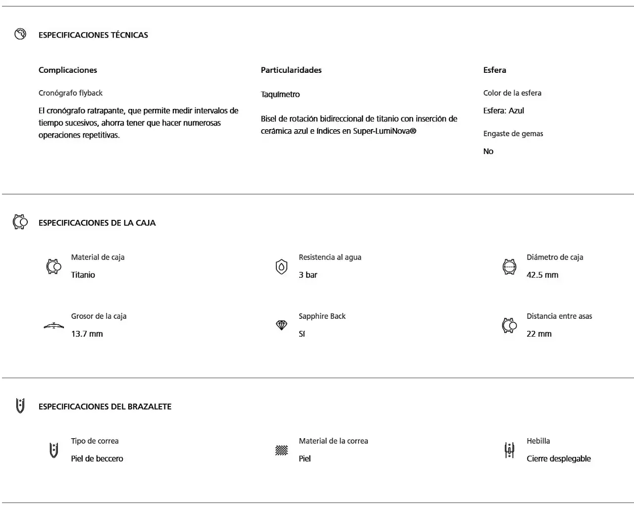 Cronógrafo Flyback · horas / minutos · escala taquimétrica · bisel de rotación bidireccional de titanio con inserción de cerámica e índices en Super-LumiNova® · esfera verde · automático. Edición limitada a 200 unidades. Precio 23.850 €