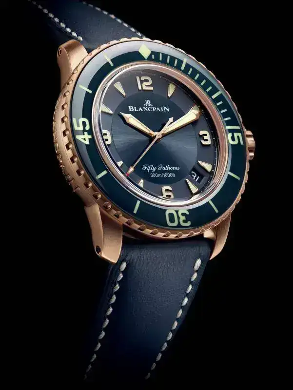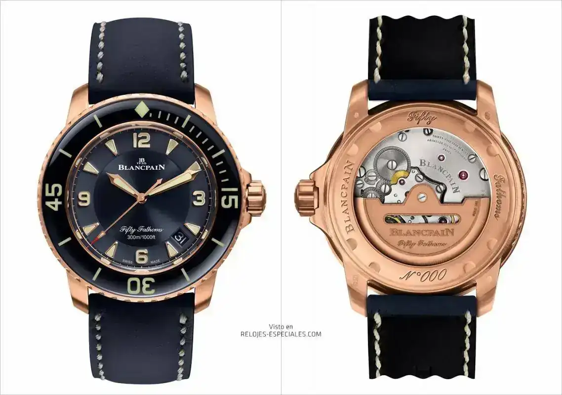 El Fifty Fathoms es uno de los modelos imprescindibles de Blancpain quien ahora lo reinterpreta en una caja de oro rojo con esfera de cerámica azul. A pesar de lo complejo que resulta trabajarla y fabricarla, la apuesta de Blancpain por la cerámica tácnica se debe a la profundidad cromática que le permite obtener.