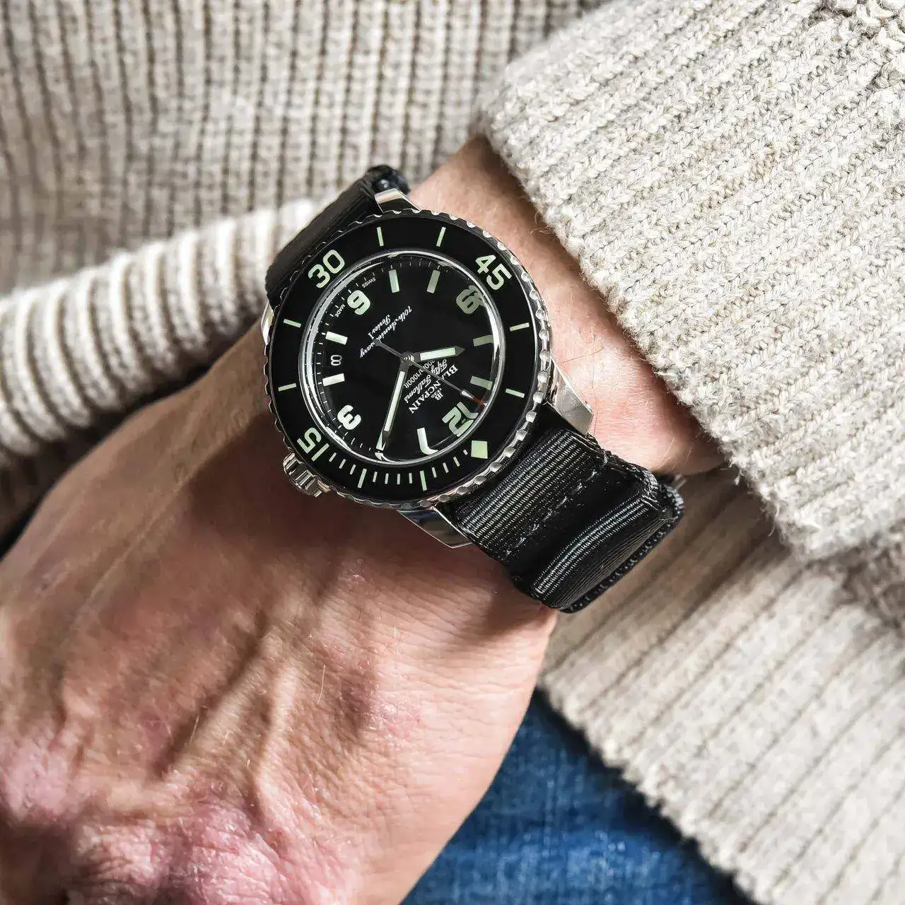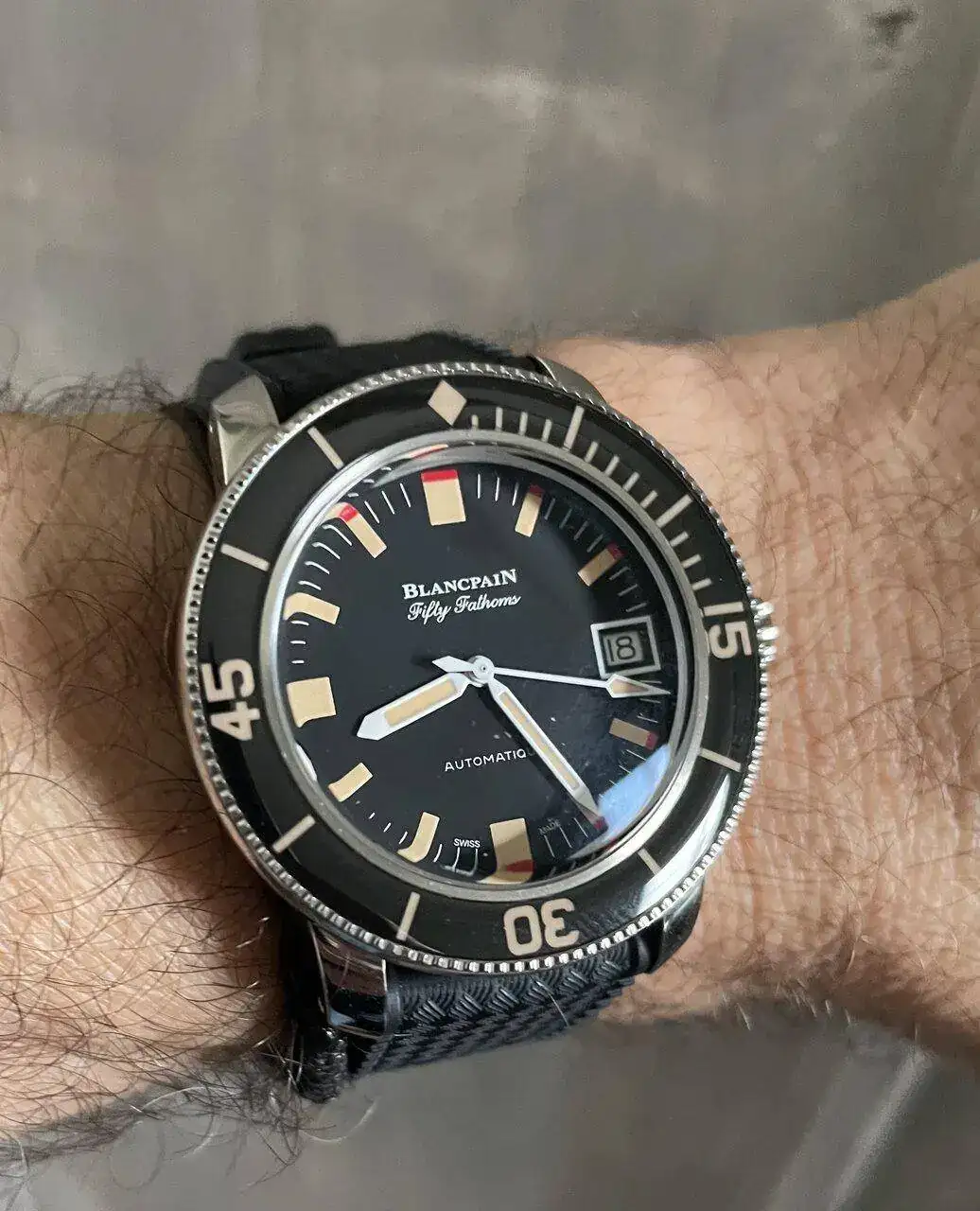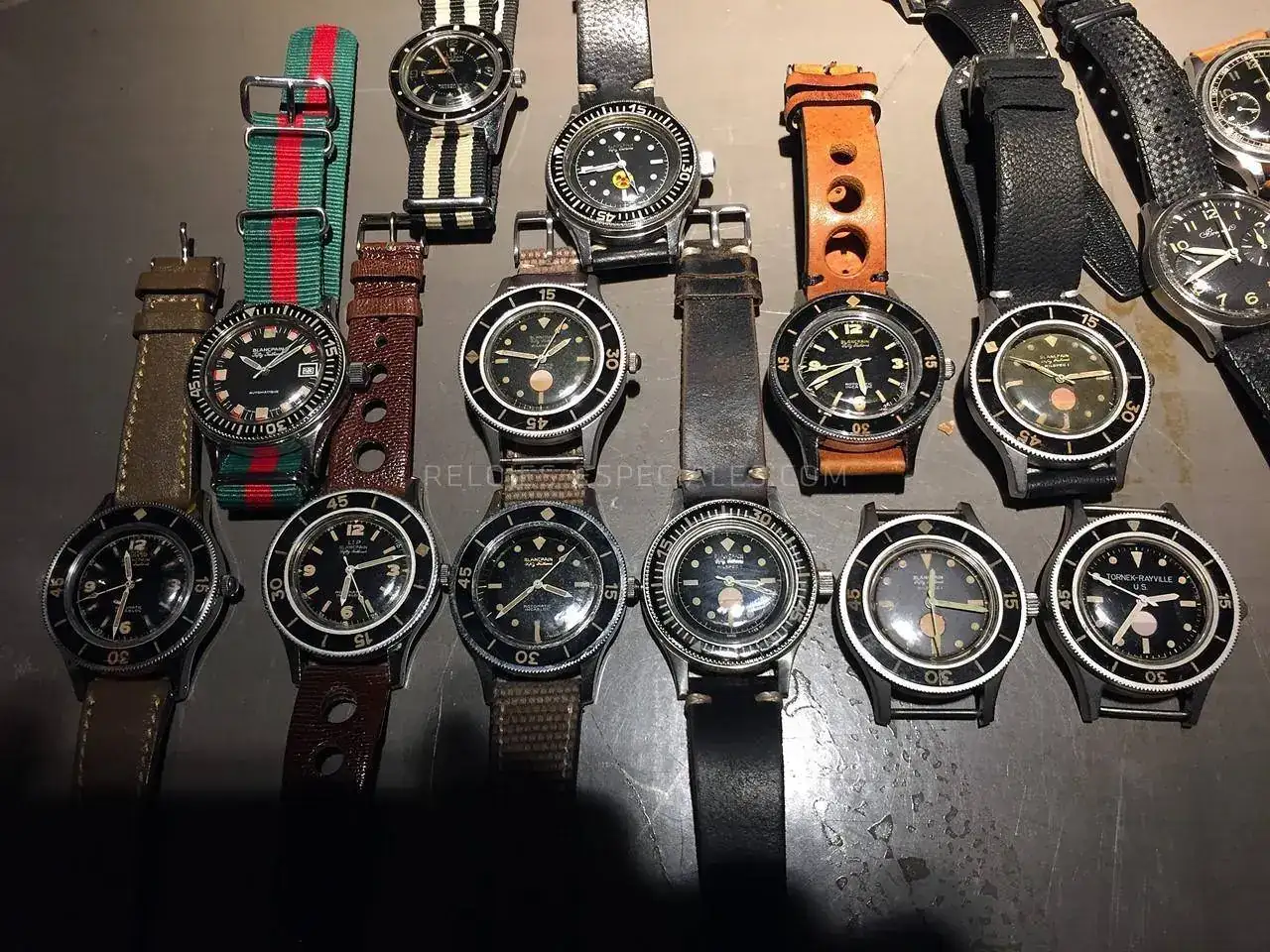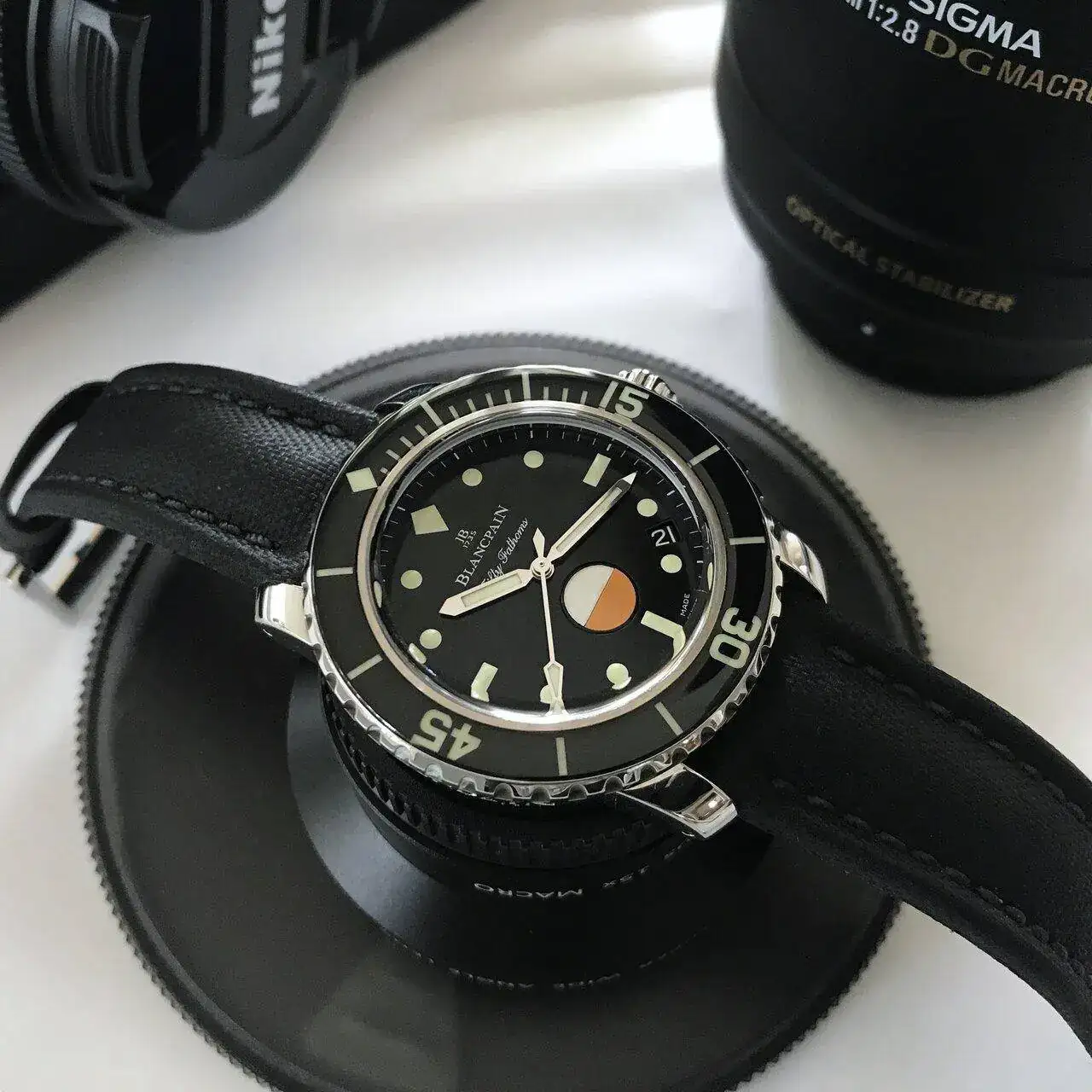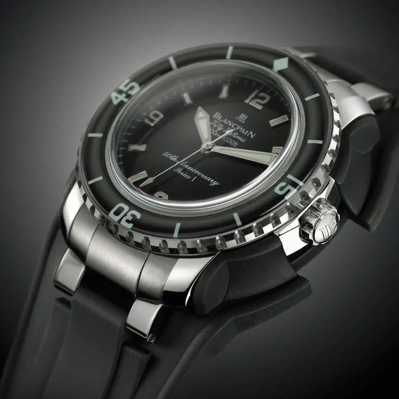 Primero una de las primeras unidades de Fifty Fathoms, con serial de 3 cifras y estado de estreno. Pieza que debería estar en el Museo de Blancpain. Puede ser incluso de 1953, año de la presentación.