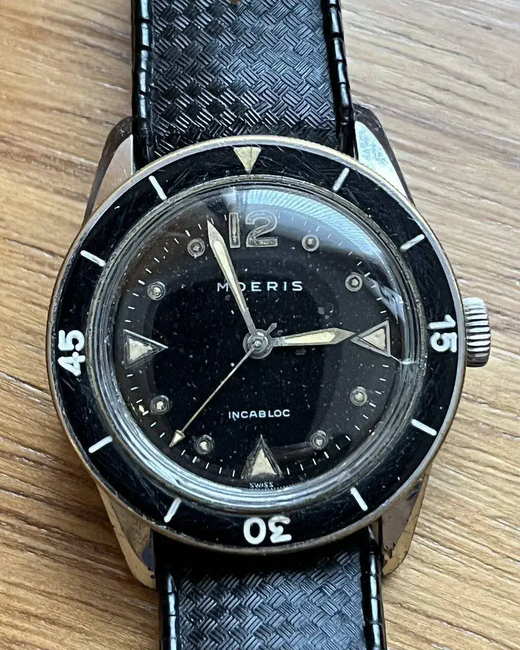 Y para continuar una de las ediciones más raras de los primeros Bathyscaphe, las elaboradas para Moeris. Esta unidad con dial Gilt Glossy MK2 y aproximadamente de 1956.