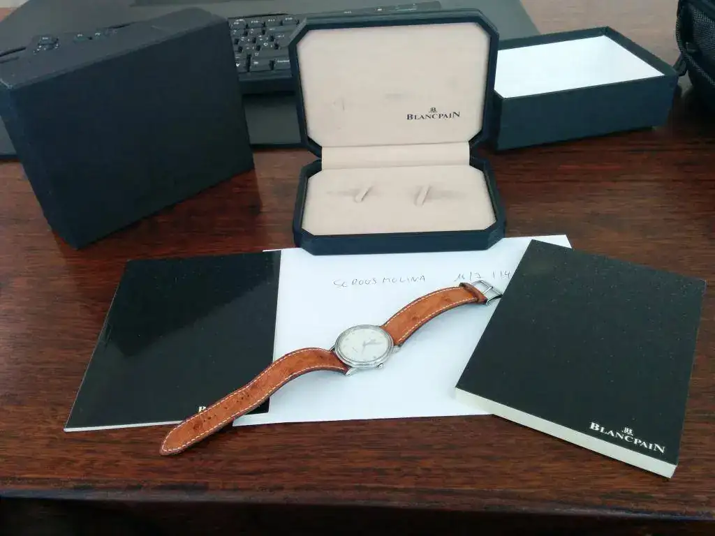 vendo Blancpain Villeret 34mm en acero. Año 1991. Dotación completa: caja, papeles, correa original de piel de avestruz. La hebilla no es originado.