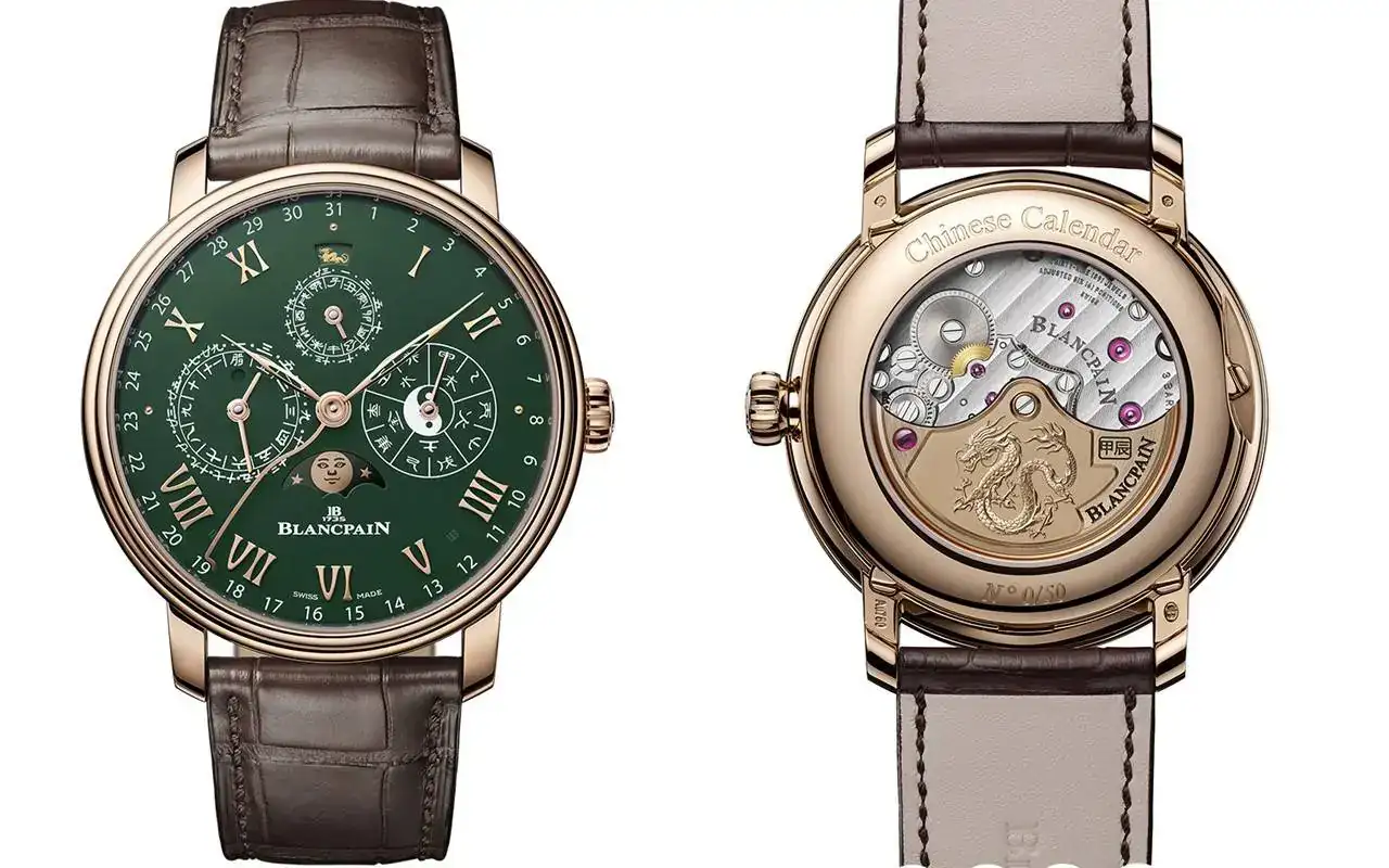 En 2012, Blancpain logró una primicia mundial al presentar su reloj de pulsera Villeret Calendario Chino Tradicional, que abarcaba Oriente y Occidente con su combinación de un complejo calendario chino, fecha gregoriana y fase lunar. Este año, la Manufactura entra en su segundo ciclo de 12 años con la presentación de una nueva edición limitada de esta gran complicación protagonizada por un dragón grabado en el rotor de oro rojo en honor al símbolo del nuevo año lunar. Esta edición especial limitada se realiza por primera vez en oro rojo con esfera de esmalte verde.