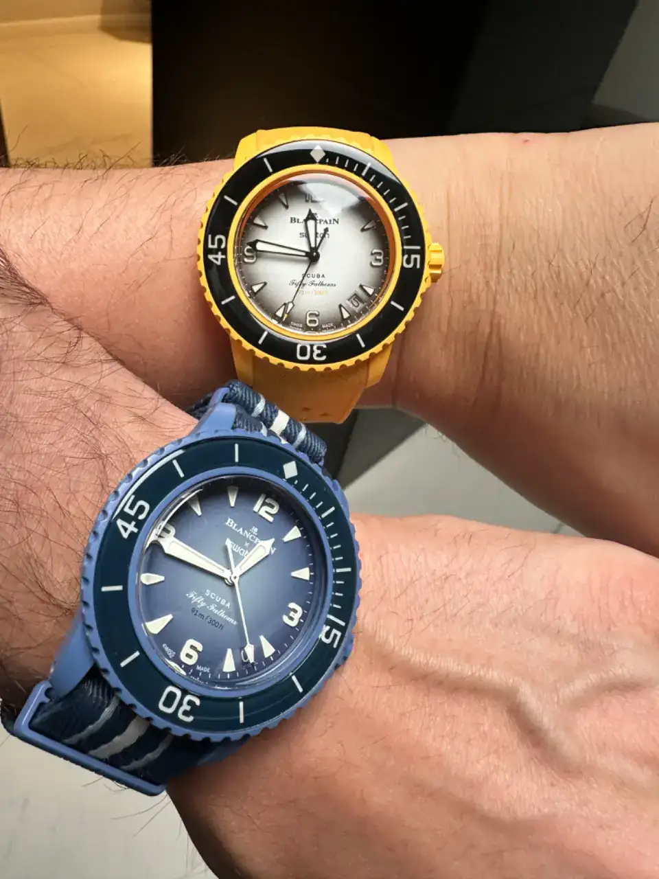 Respecto a los relojes, compre un Moonswatch y no me convenció en absoluto y le di puerta rápidamente, sin embargo el Blancpain me ha convencido y mucho.