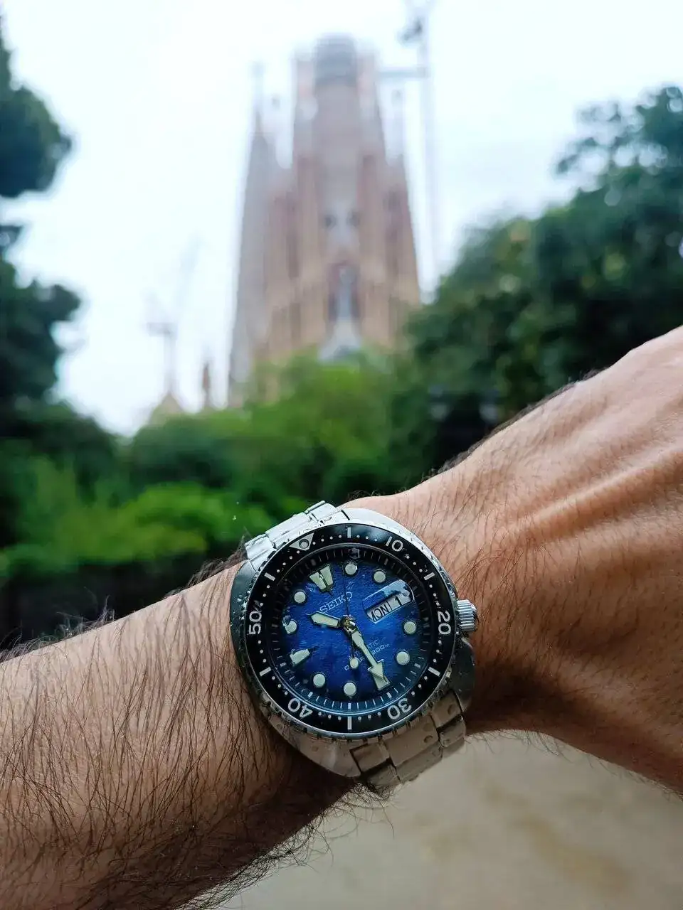 Precioso reloj, y buenas vistas!! Estas cerca de casa 😉. La banda sonora, muy apropiada al dia 😉 💙💙