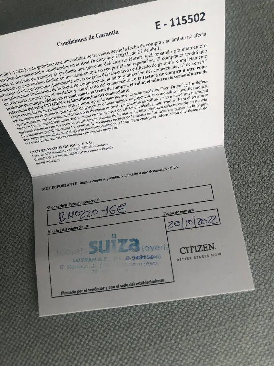 Comprado nuevo a relojería suiza 10.22