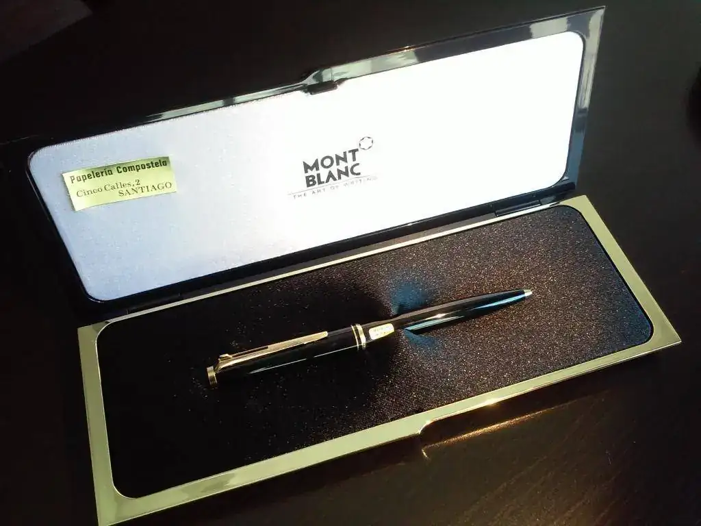 Tengo este bolígrafo Montblanc pero no se de que modelo se trata. Tiene un extraño mecanismo para hacer salir la punta que no había visto nunca. Dejo foto y agradecería cualquier información. 2016-10-25 11.32.16.webp