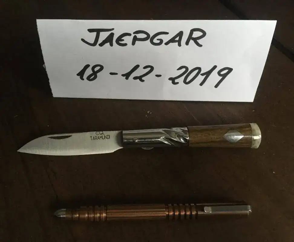 Buenas tardes , pongo en venta este fenomenal conjunto de bolígrafo táctico de cobre Rick Hinderer con navaja de Taramundi con incrustaciones de plata y una funda artesana de cuero Hitch & Timber. El precio del conjunto ( solo se venden juntos ) son 140€ enviado por correo certificado. Muchas gracias.