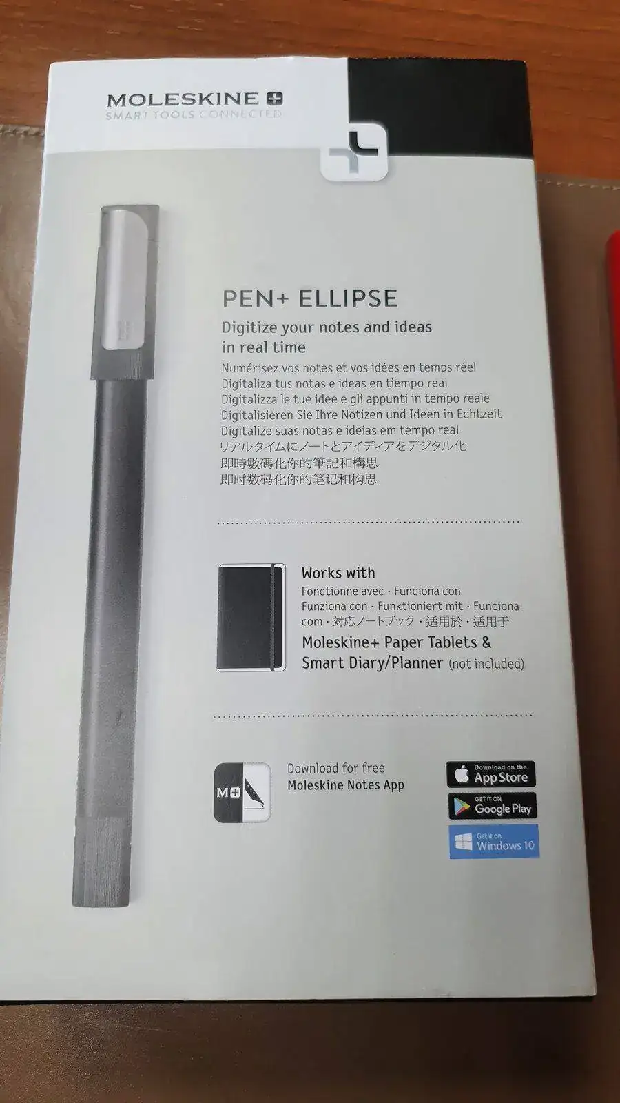 • El bolígrafo + Ellipse es compatible con el cuaderno Moleskine y el Smart Diary, con páginas que sobresalen de la cubierta, recordando la apariencia de una tableta digital