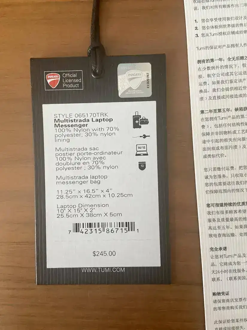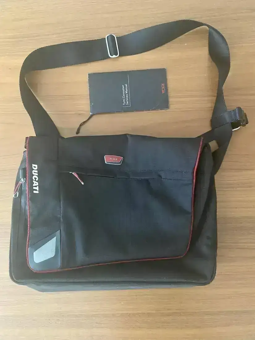 Hola compañeros, vendo bolsa Messenger de la Prestigiosa marca TUMI Serie DUCATI, para llevar el ordenador o lo que se quiera . Es de una calidad y detalles propia de la marca y con los emblemas de DUCATI. Tiene algun roce leve en la parte de abajo de meterla en el cofre del scooter yeso o eso está impecable .