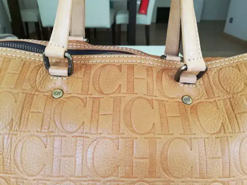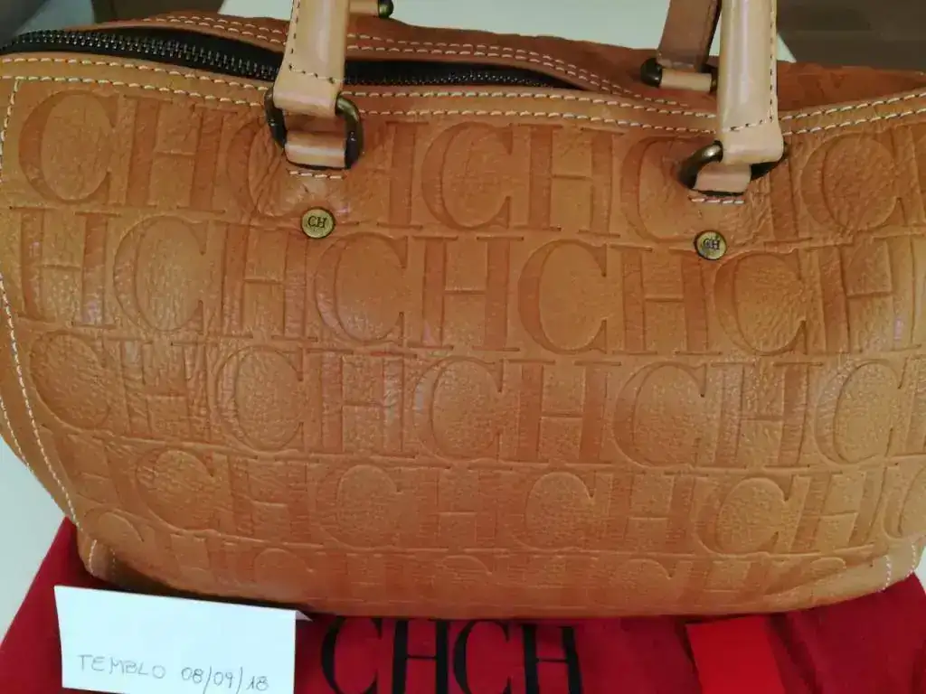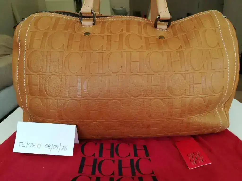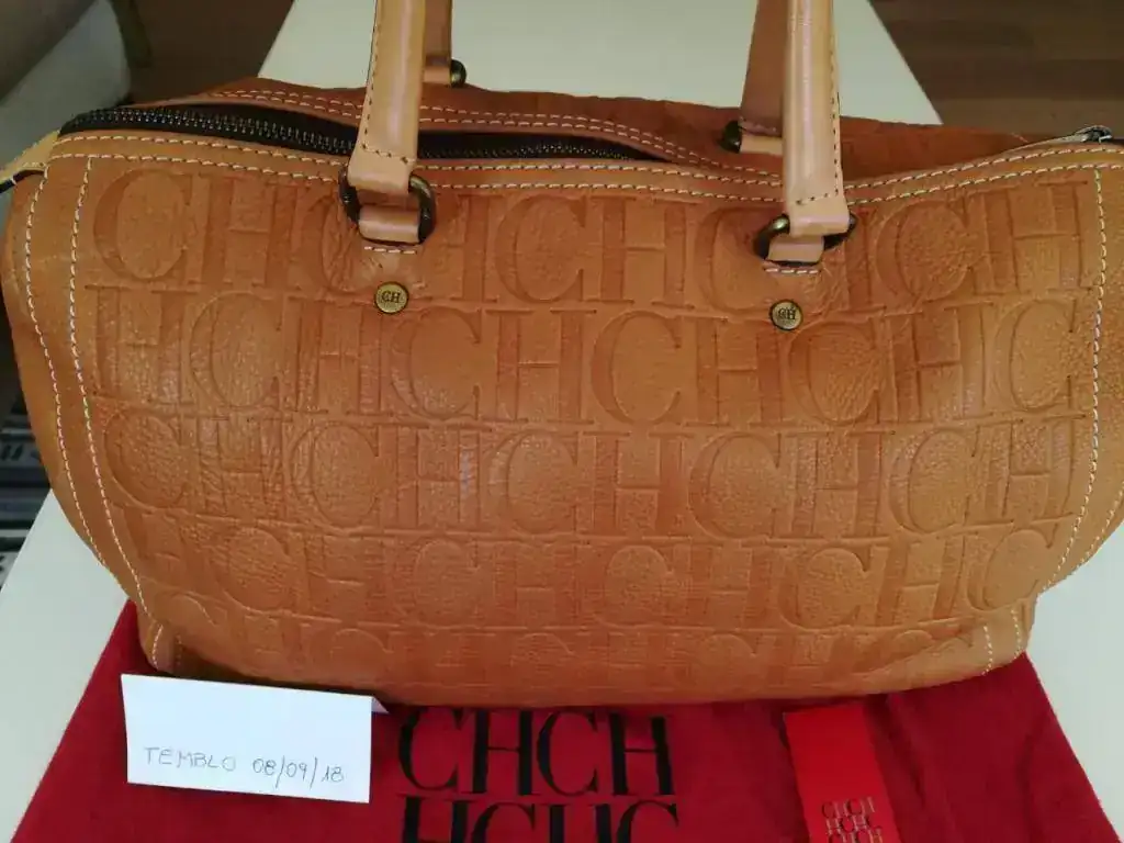 Pongo a la venta este bolso de Carolina Herrera modelo andy en piel dune y color cognac. El tamaño es 38x22. El bolso fue comprado por mi en el Corte Ingles. El bolso esta en muy buen estado no teniendo la piel ninguna marca ni roce. El bolso se entrega en su guardapolvos original. Se envía por correos certificado. Este bolso tiene ahora un precio de 660 y lo vendo por 300 con el envío incluido. ahora las fotos donde se puede ver el estado del mismo.
