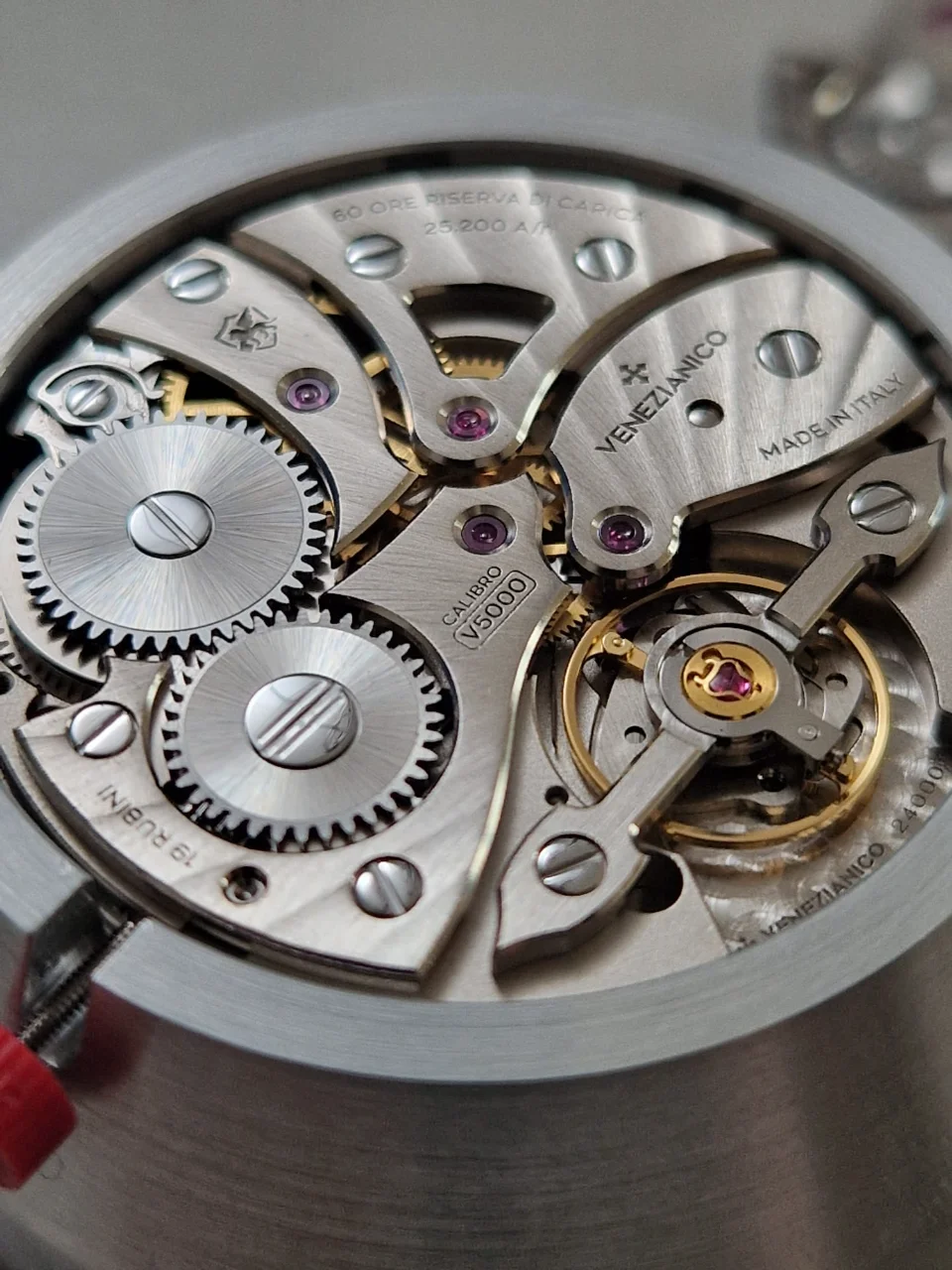 Este calibre propio diseñado desde cero y llamado V5000 es terriblemente parecido al calibre de cuerda manual 29-50 de Oisa, también con el conjunto de puente y balance fabricado por Atopalka, misma disposición de ruedas y joyas, mismo tamaño, mismo número de rubíes, oscilaciones, y que se monta desde hace unos años en otros relojes: