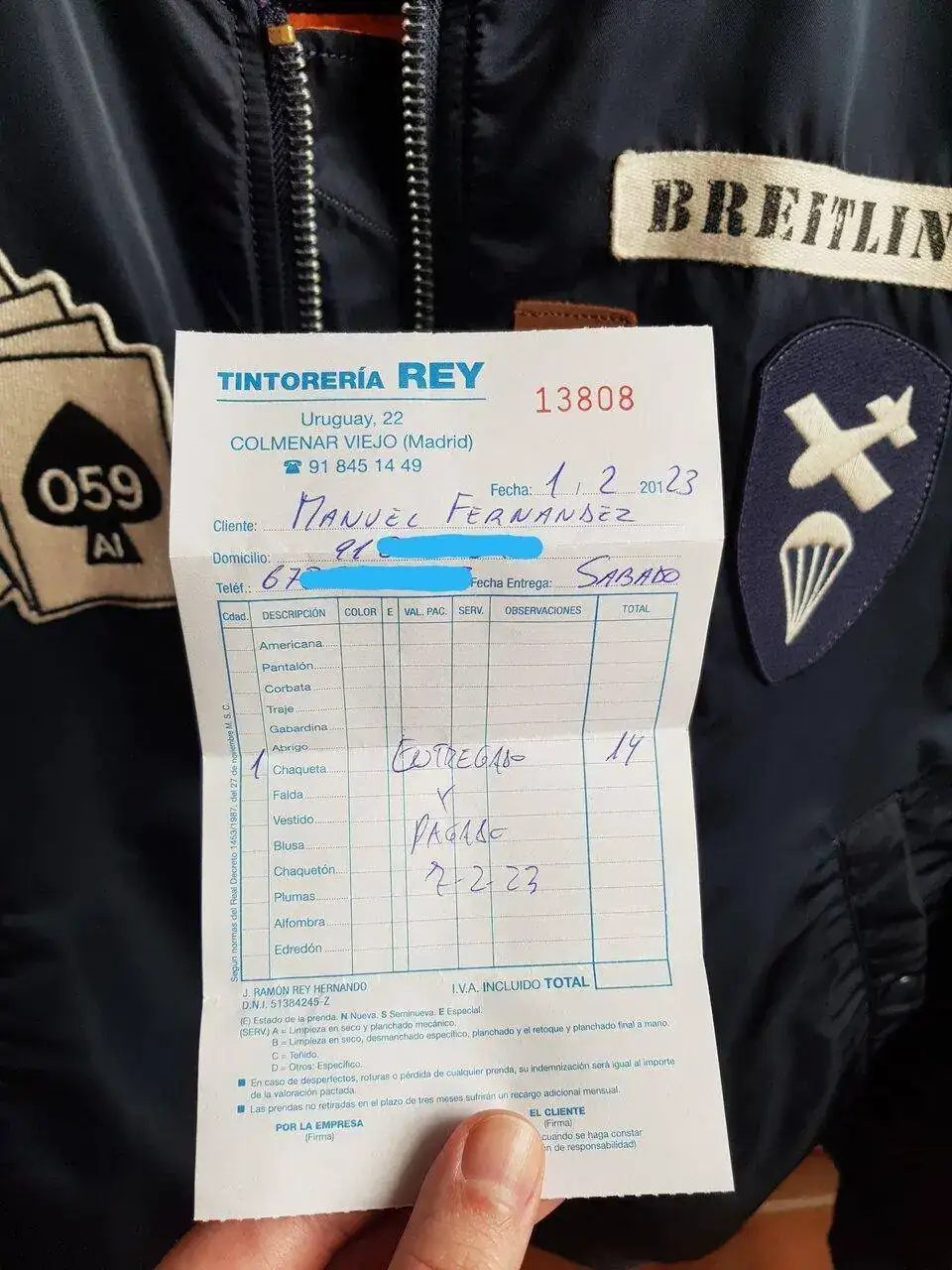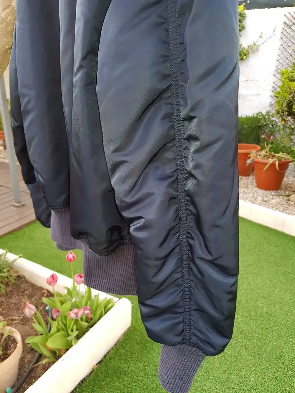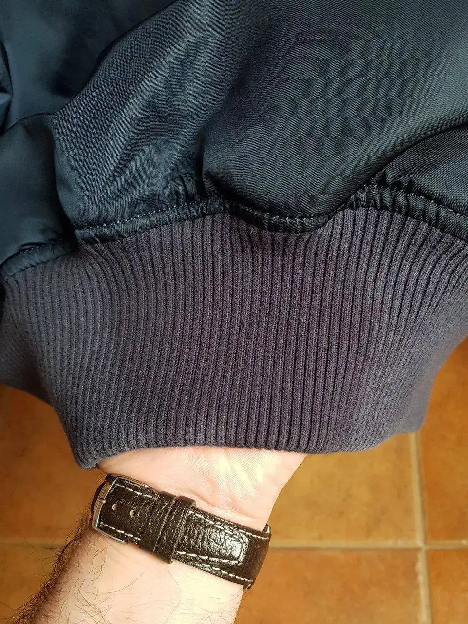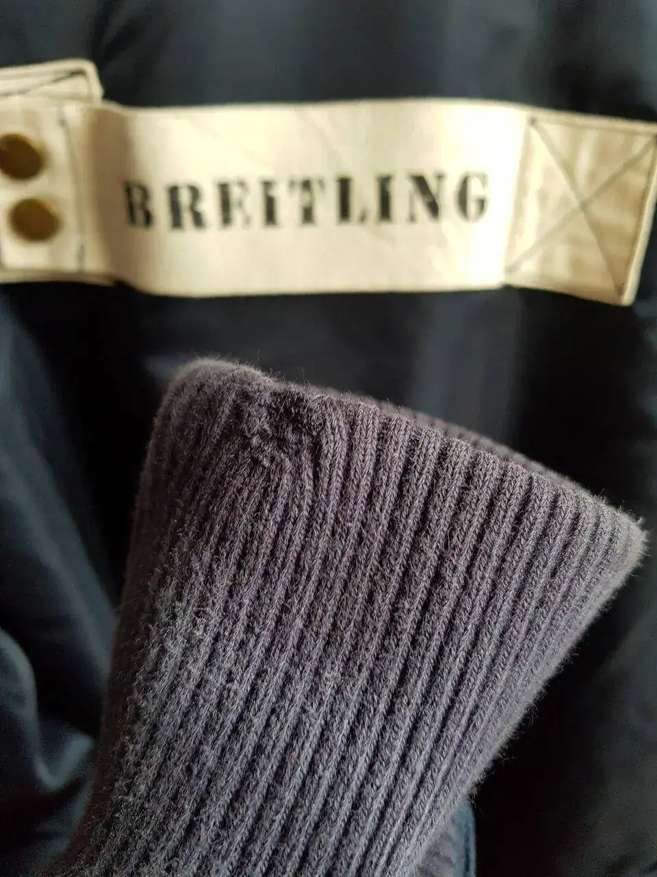 -Descosido (reparado) en puño de la manga izquierda provocado por el uso de ciertos relojes.