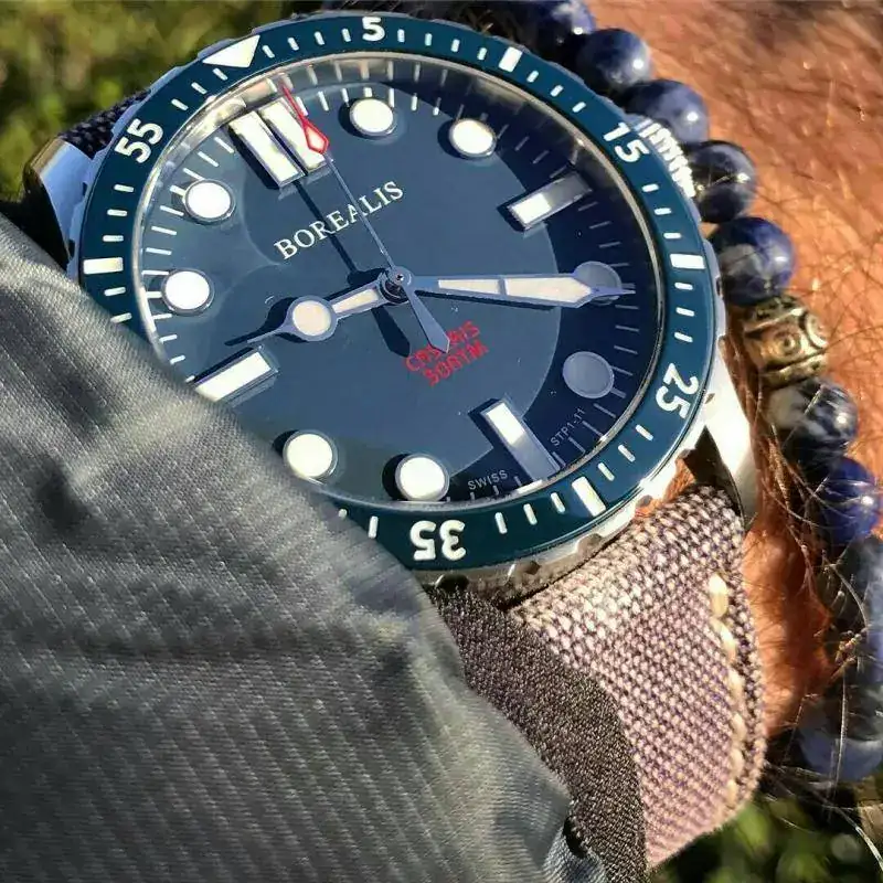Los straps de cuero original no me sirven en mi muñeca de orangután, 8.3in asi que le puse estos que le compré a Felipe de Wearwatch.