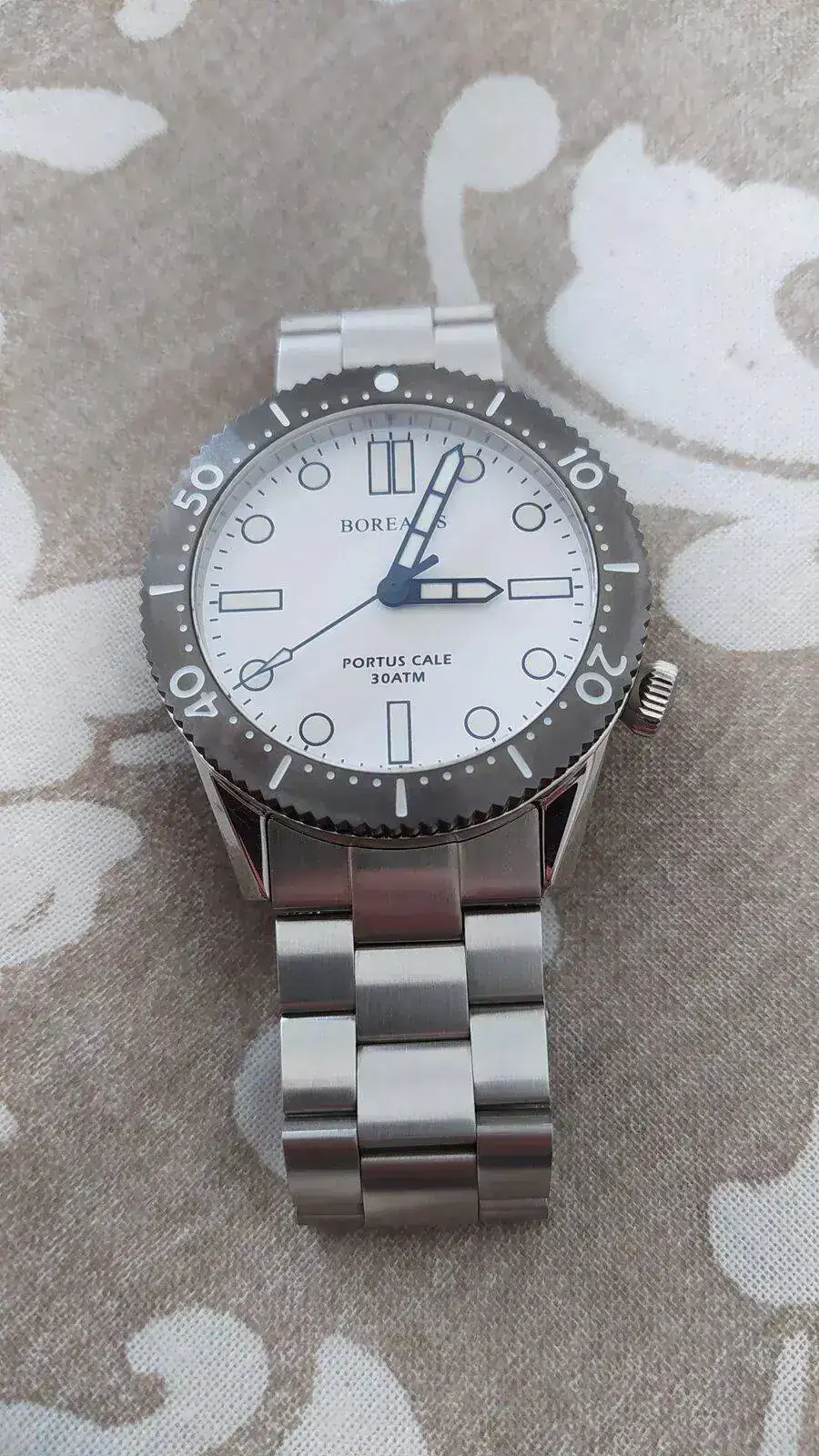 Se vende Borealis Portus Cale comprado nuevo a estrenar en julio de 2020. Está prácticamente de reestreno. No ha salido casi nada de la caja, sólo por casa y no tiene nada que destacar, salvo quizás pelillos en el cierre. Se vende con su caja y eslabones sobrantes. No tengo la tarjeta de garantía, no la encuentro. Modelo con superluminova blanca en índices y bisel. Descatalogado.