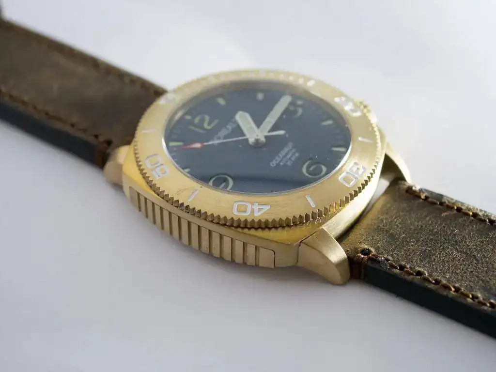 de hecho si lo tuviese le quitaría la pintura con un alfiler o algo para dejar el bronce al descubierto y que coja pátina al acumularse la humedad en el relieve de los números. El diseño de la caja en general tampoco me dice nada...Lo mejor de todo diría que es la correa de cuero envejecida que tiene muy muy buena pinta