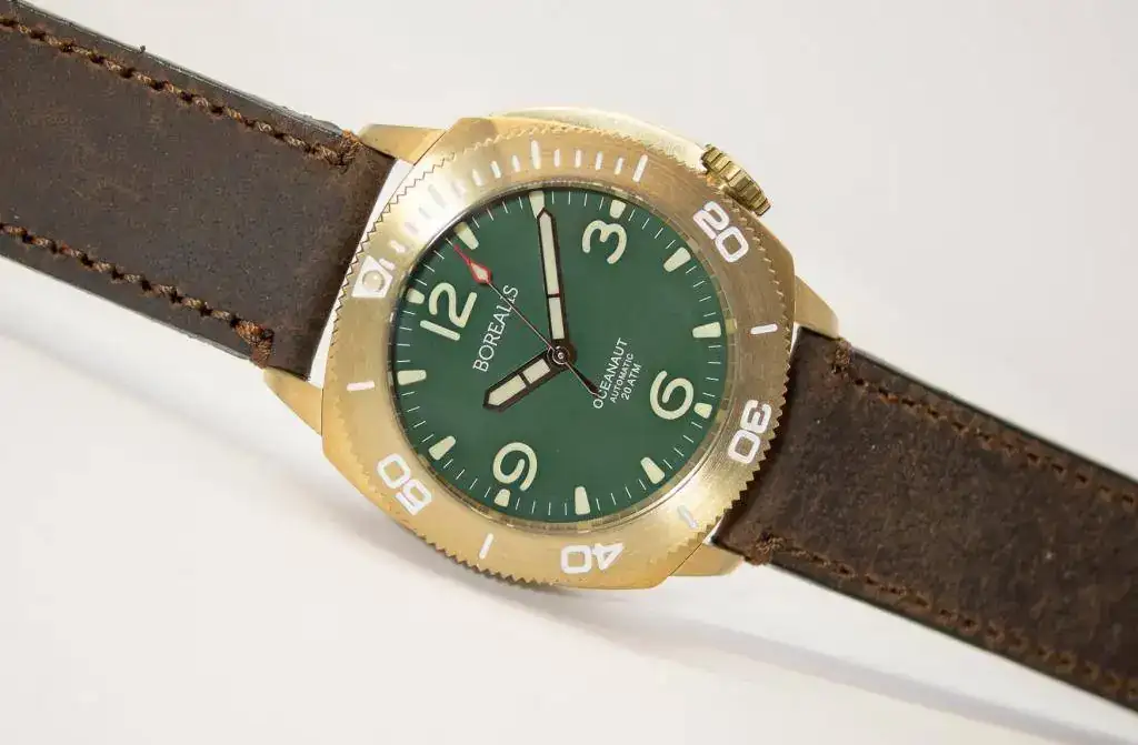 - Signed screw down crown with Borealis logo made of Aluminum bronze
