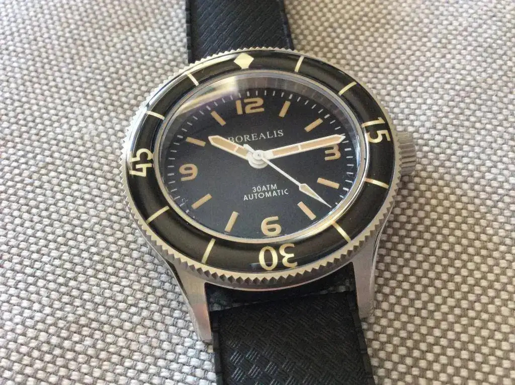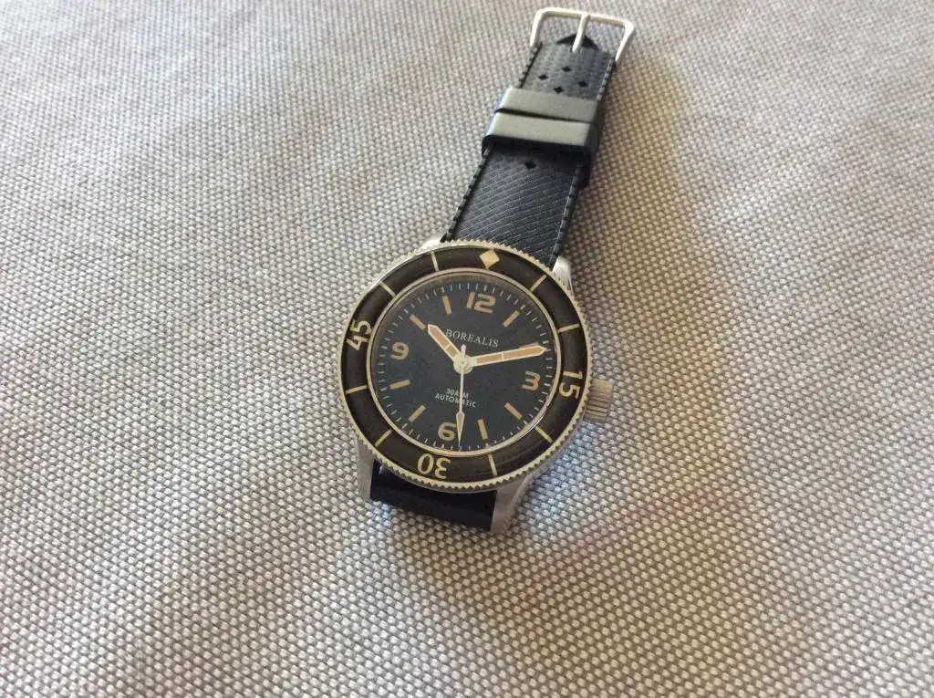 Vendo este diver,que como todo el mundo sabe, rinde homenaje al famoso B.P. Fifty Fathoms, en perfecto estado.El reloj ya no está en producción.Le quedan seis meses de garantía.