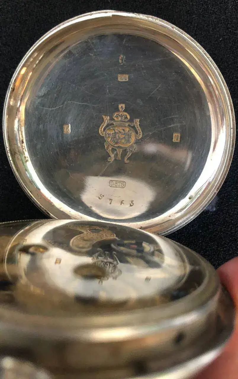 En el interior de la tapa trasera se aprecia que es un reloj de plata firmado con una de las 3 marcas registradas de Bovet para China en este caso la del medio, fijense que el número de serie corresponde al de la esfera (5765).