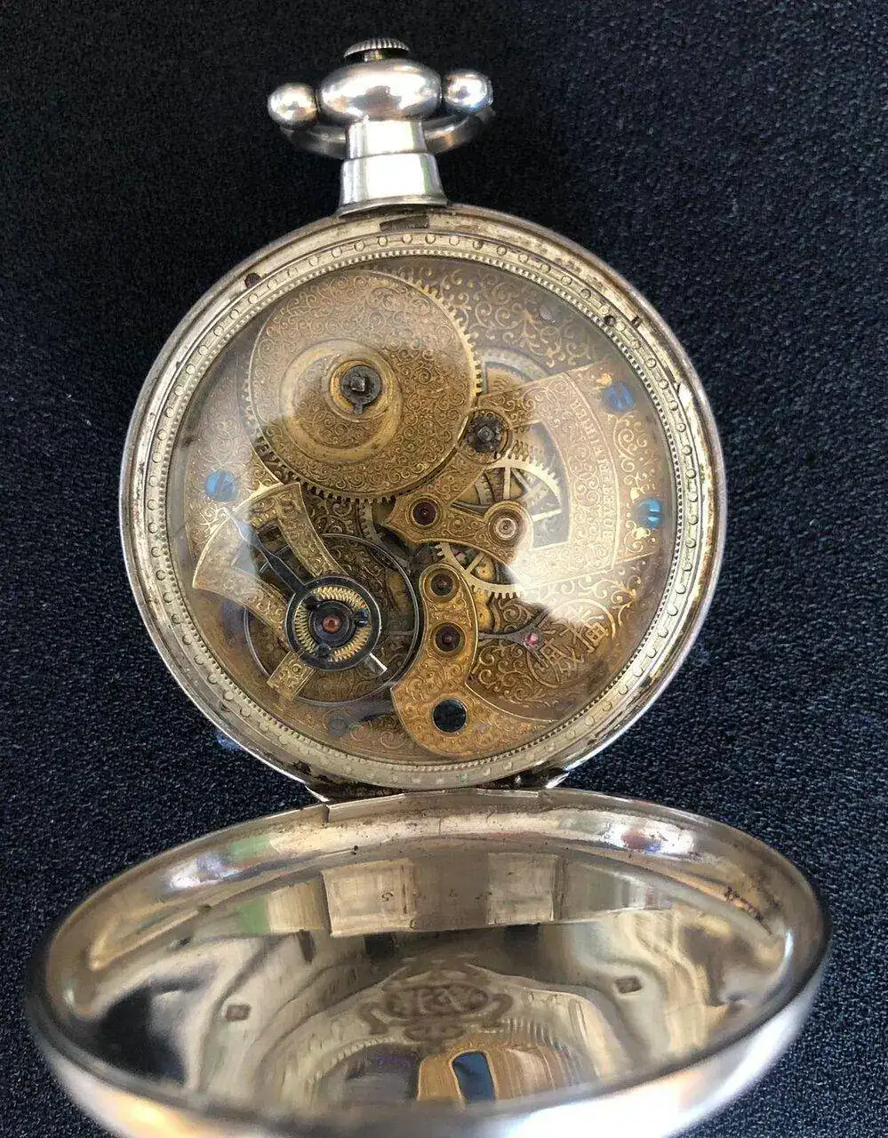 El reloj tiene un guardapolvos de vidrio con los 2 orificios para introducir la llave que permite dar cuerda al movimiento y cambiar la hora.