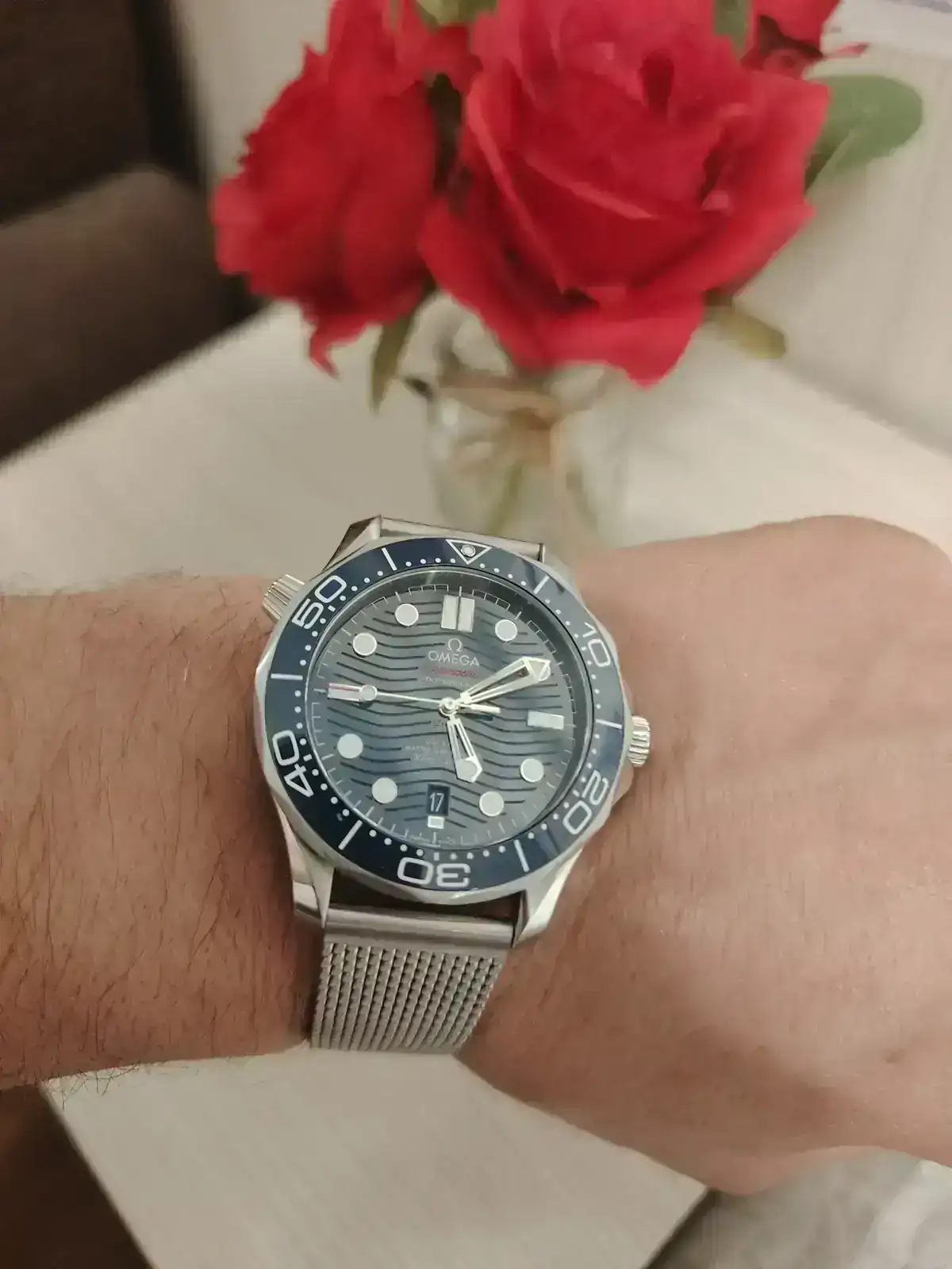 Hola, al final me decidí y compré en la web de Omega esta pulsera milanesa para el diver 300 M.