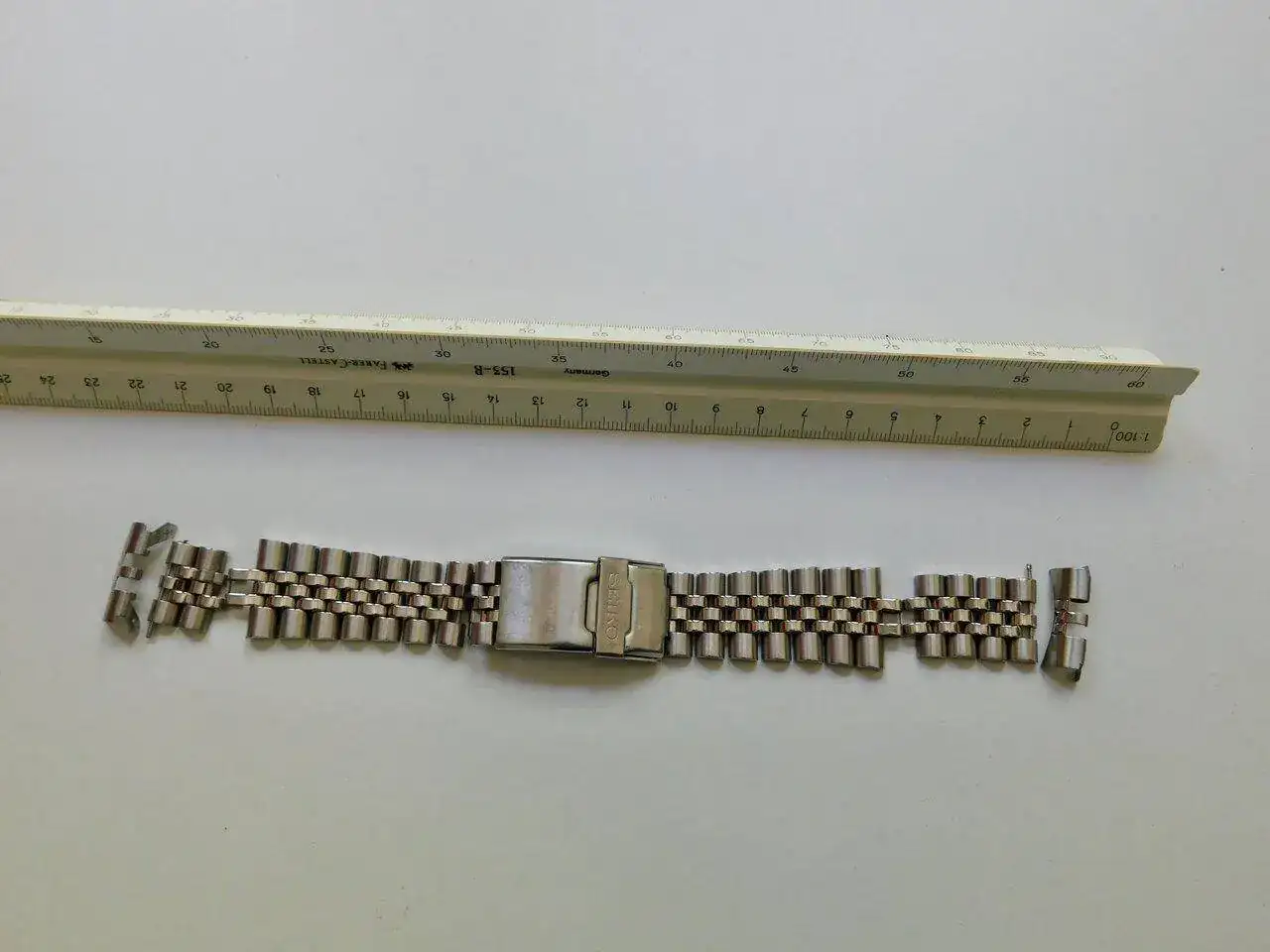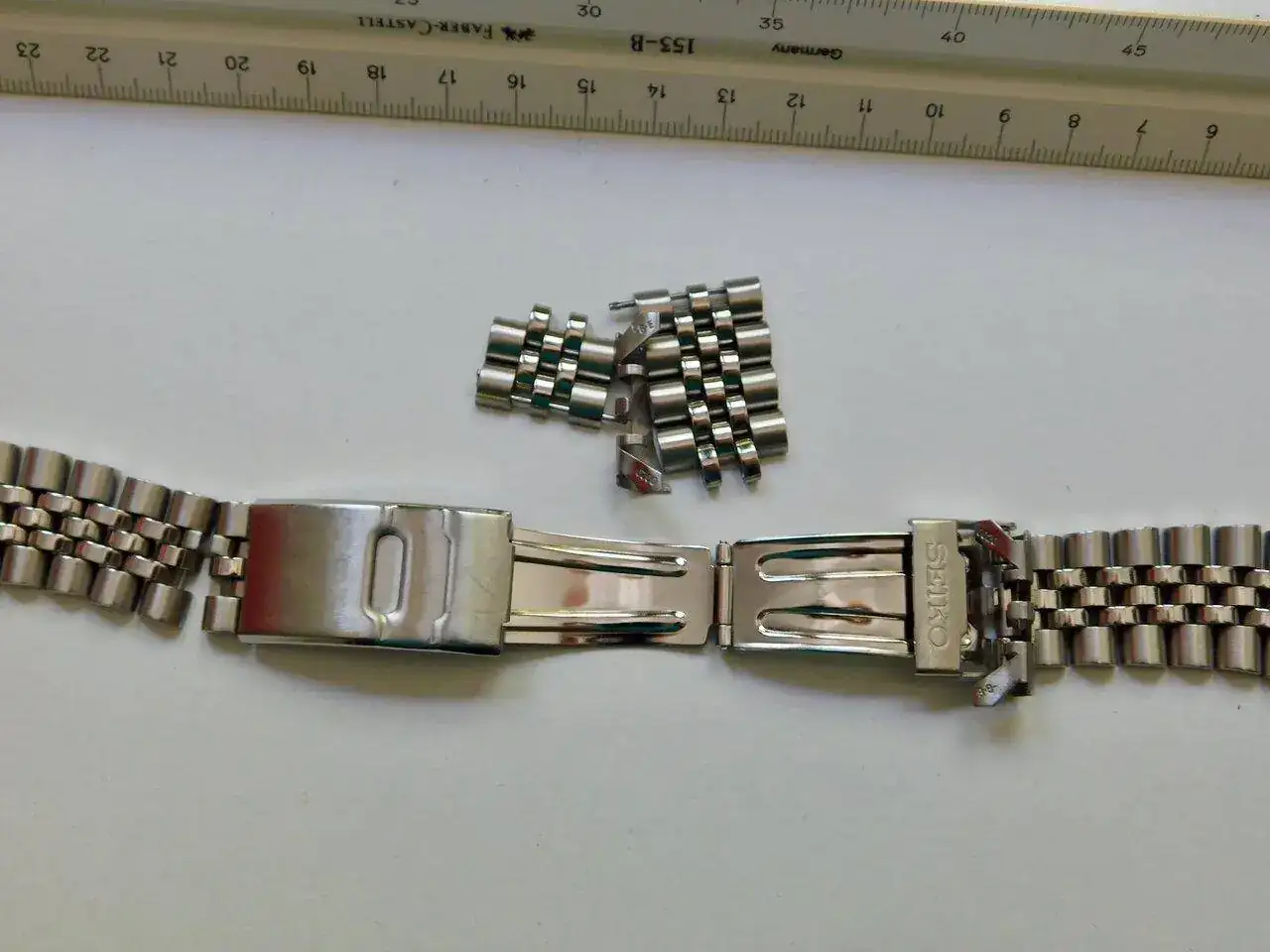 ---- Brazalete Seiko Jubilee de 22 mm: En buen estado y con eslabones sobrantes (el cierre tiene los típicos agujeritos para hacer un mejor ajuste). En los terminales del armys yo leo: 0020 y G (o 6).E. Precio 50 euros.