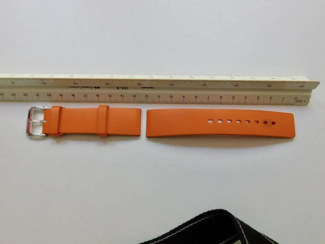---- Correa Caucho Hirsh Naranja (ref # 40538876-2-22): En el penúltimo agujero tiene una ligera marca (ver fotos). Precio 30 euros.