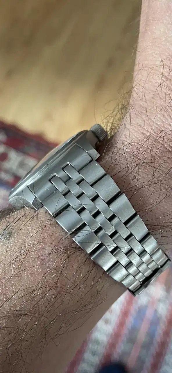 Por último, creo que es bastante cómodo. Se ve muy sólido (ya que todos los links lo son), pero el hecho de tener endlinks huecos, y cierre convencional de chapa, hace que su peso no sea excesivo (como pasa con algunos brazaletes de strapcode, por ejemplo) y sea bastante llevable.