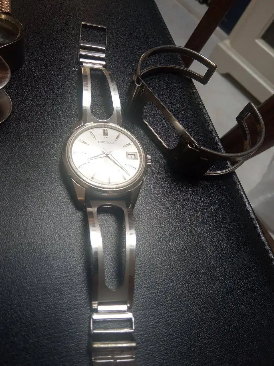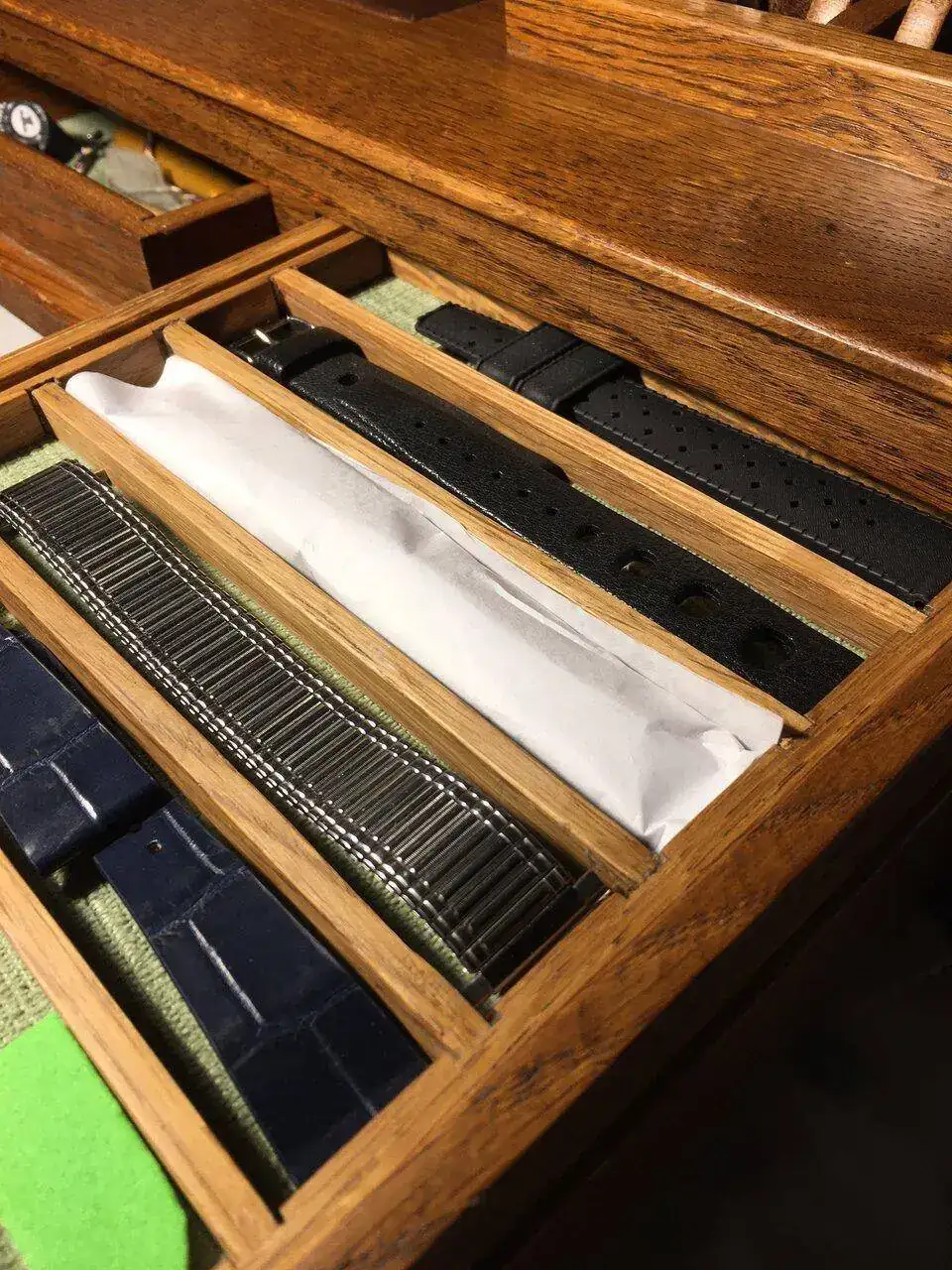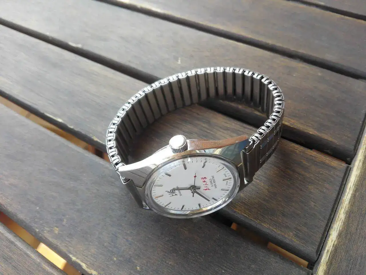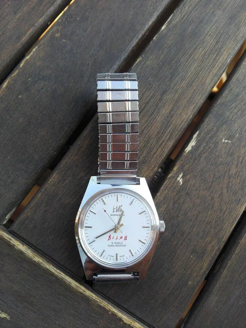 He tenido que recurrir a un relojero y ahora sí la puedo lucir adaptada a mi muñeca. De momento, se la he puesto al Shanghai para reforzar su imagen retro: