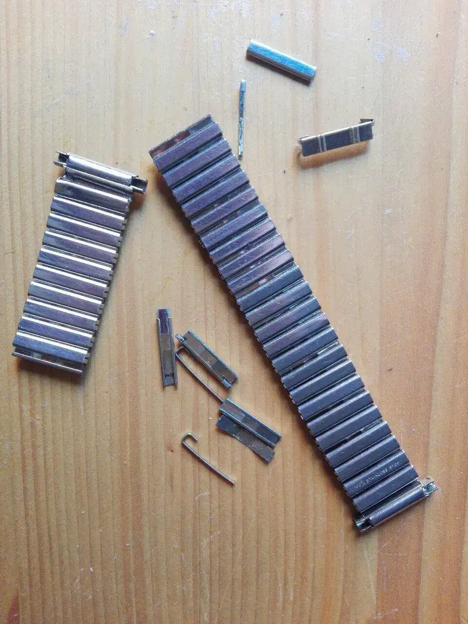Yo tengo una correa de acero de un reloj de mi abuelo, sin marca, con pinta de baratera, que me gustaría utilizar pero no sé como acortar (la muñeca de mi abuelo era bastante más grande que la mía). Se agradecen ideas