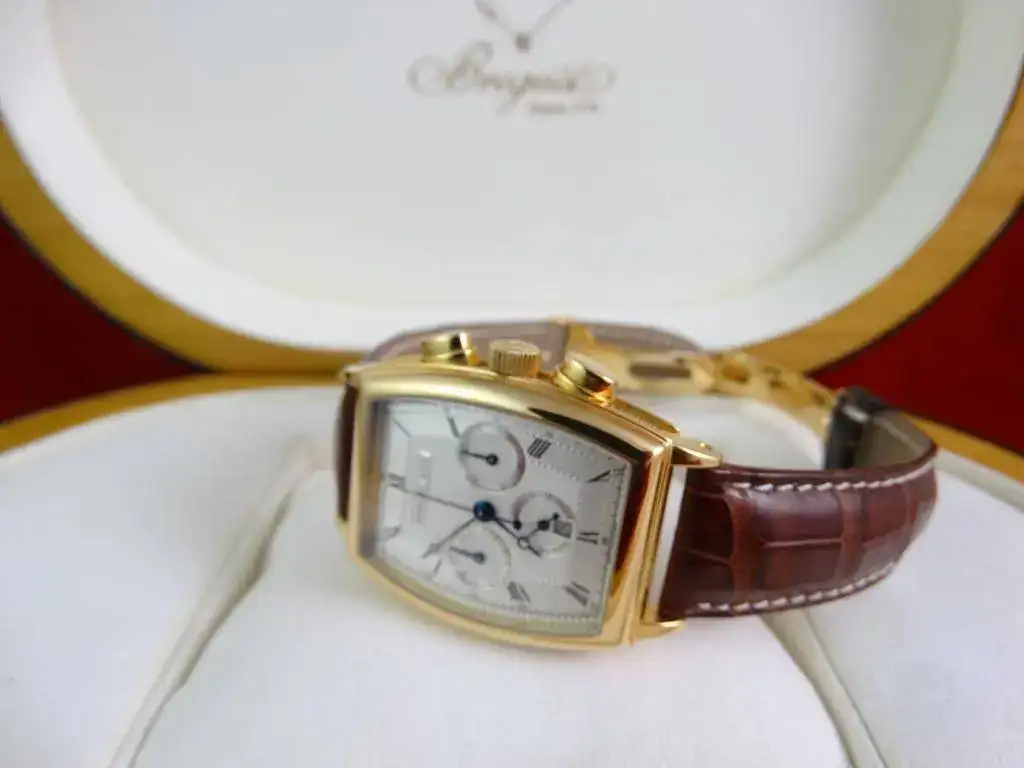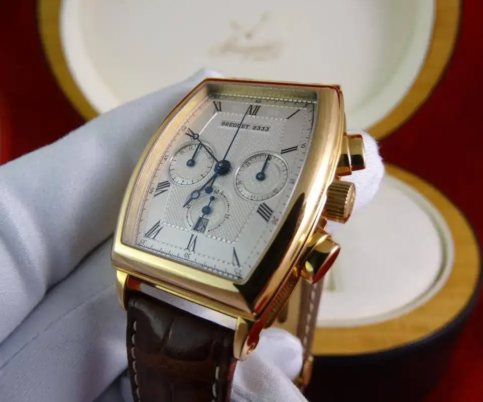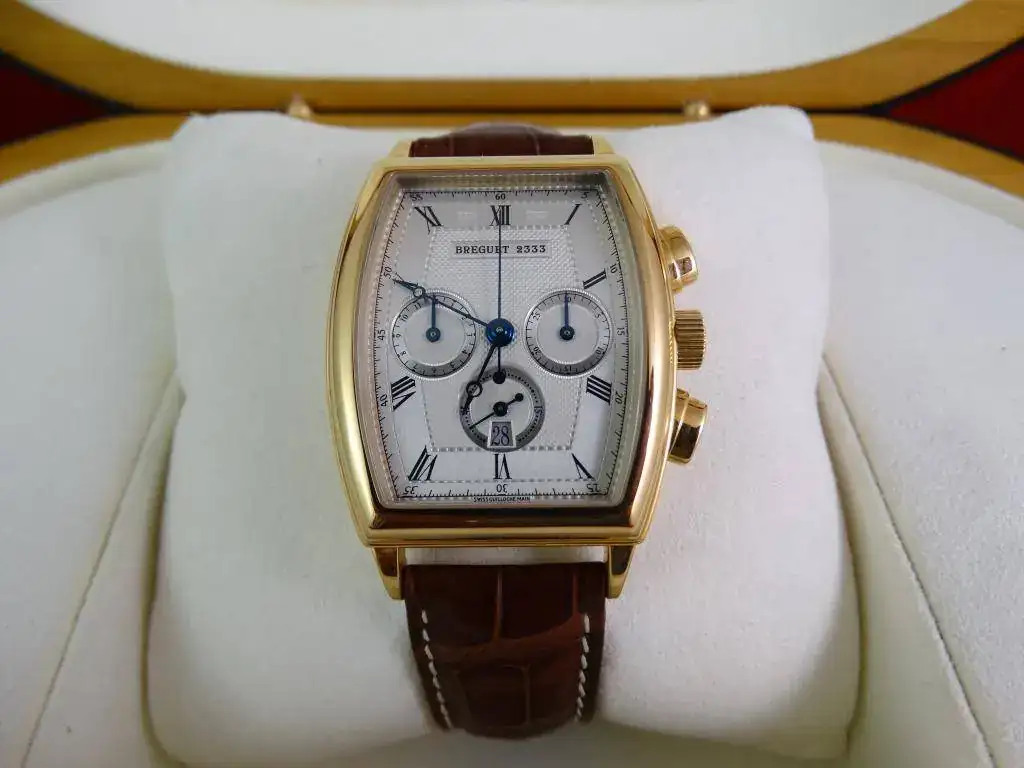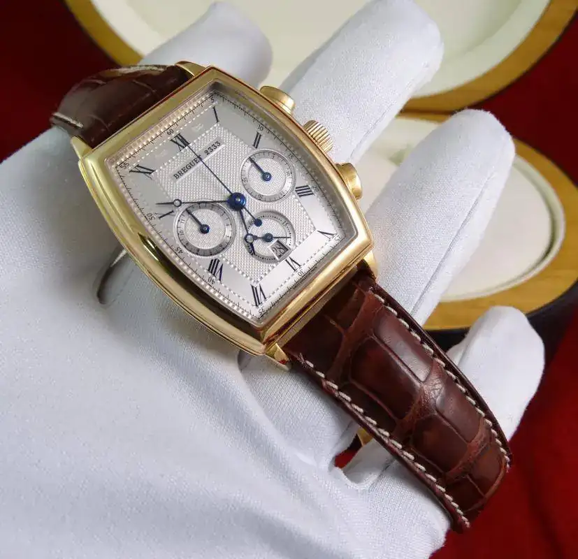 Para hoy proponemos un Chrono de la manufactura Breguet, un reloj que plasma la elegancia y buen hacer de esta manufactura. Una caja tonneau de oro de 18k con unas dimensiones que lo hacen increíblemente cómodo y elegante en muñeca.